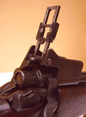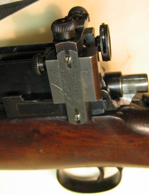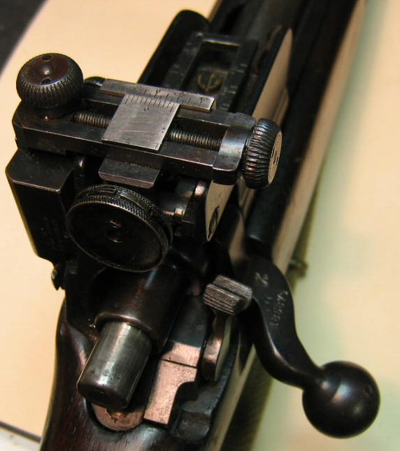 ![]() 安装有微调照门的一战时代狙击步枪,注:此图中的P-14已经转换成.22口径,但外观上不明显。 |