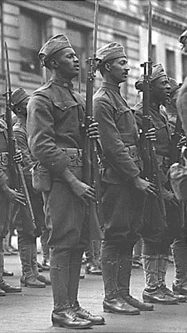 在纽约街头上手持上刺刀的M1917步枪参加阅兵的美国陆军士兵