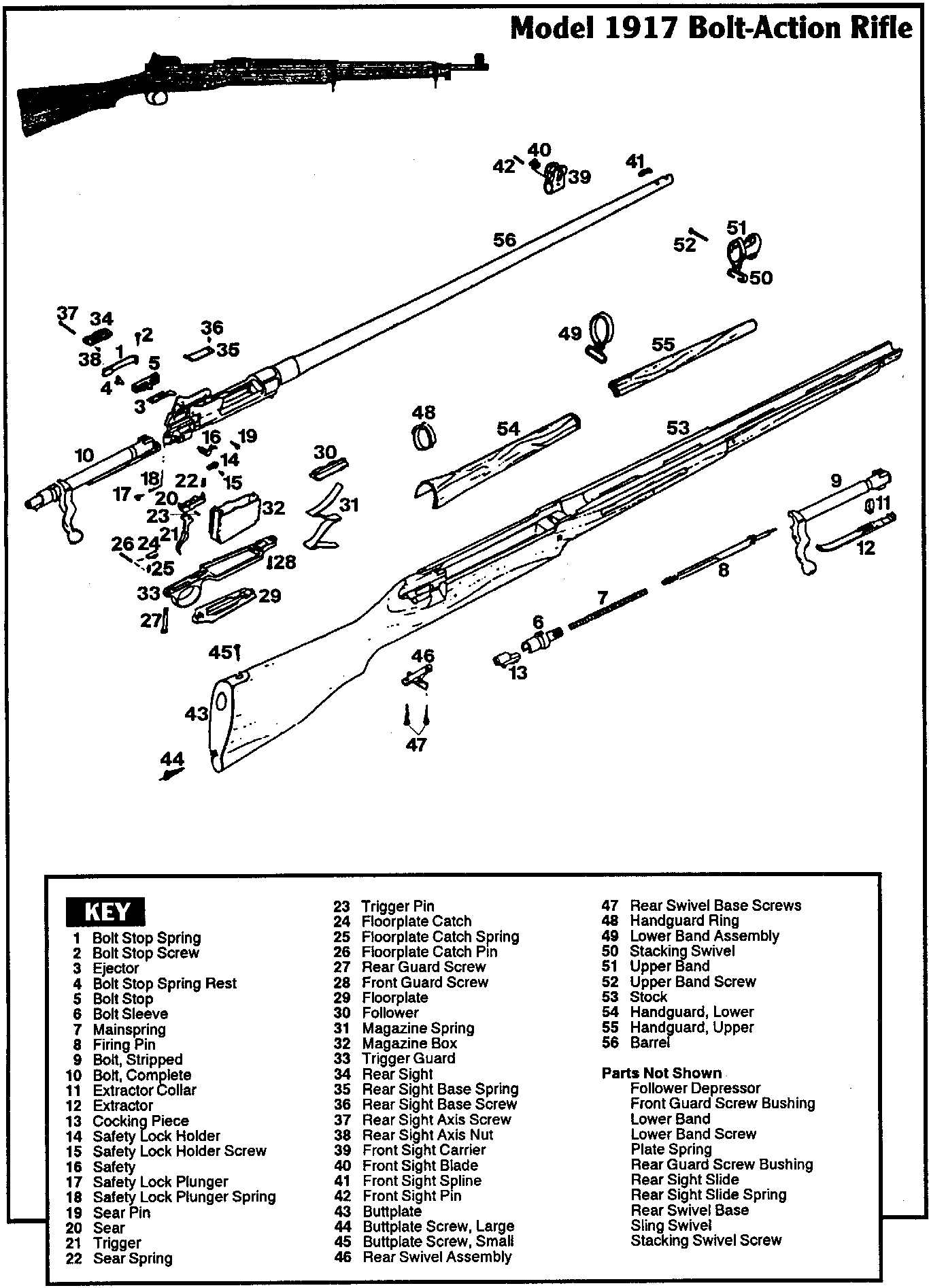 .30-06口径M1917步枪,外形与P-14步枪一模一样,只是枪托上没有圆铜片