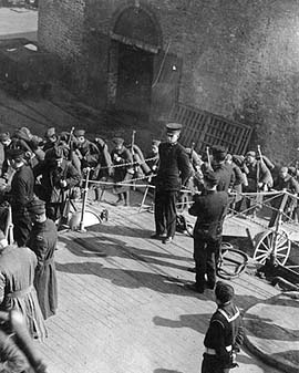 在不列颠战役前加紧备战的英军士兵,由于敦克尔克撤退时损失了大量的步枪,因此库存的No.3步枪都取出来装备部队和国民自卫军。
