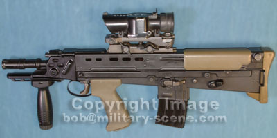 L22A2已经装备驻伊拉克的英军坦克后。L22A2除了接受了SA80A2相同的改进外,还增加了3段皮卡汀尼导轨,原本在L22A1上的固定前握把也改用导轨接口握把。