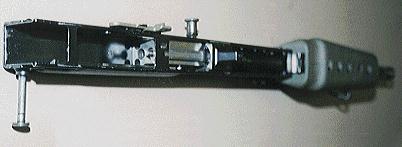 机匣为冲压件,分为上下机匣;发射机构为一完整的组件,组装在一个冲压成型的框架内,并通过一个小的底板用两个销钉与机匣联结。