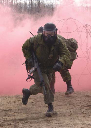 目前,Simunition的训练弹药有多种类型,包括空包弹,但主要的名气大的产品仍然是FX标记弹(彩弹,或称为反应弹)。虽然过去也有一些单位使用Wargame用的彩弹枪来进行对抗训练,但那些彩弹枪的外形和真枪区别很大,操作感也完全不同,而且射程极近、弹道极其弯曲。至于激光模拟训练系统虽然作用距离比较远,用真枪发射空包弹的操作方式也贴合实战,也不存在弹道弯曲的问题,但使用和维护成本比较高,而且草丛树枝都有可能影响接收器的效果(以前我看《COMBAT MISSION》的时候,其中一集就有一队参赛队利用床单来作弊)。
