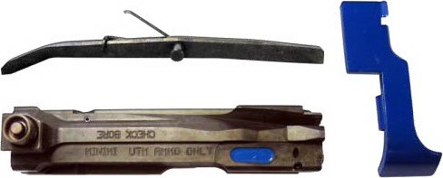 至于配套的枪管和枪机外表有新鲜的蓝色作为标识,而弹匣则是透明的,均不能与实弹混用。发射FX标记弹的枪机很轻,而且改为自由式枪机,因此发射时的高压气体也能保证可靠的自动循环。