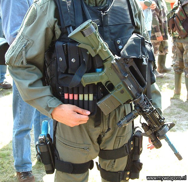 在1980年代后期,位于加拿大魁北克的SNC公司(SNC Technologies Inc.)研制了一种把真枪改装成发射彩弹的战术对抗训练系统,并以Simunition为商标推出市场,被一些国家的特种部队或执法机构用于近战训练。该公司在2006年后被通用动力公司收购,正在改名为通用动力-军械和战术系统加拿大分公司(General Dynamics - Ordnance and Tactical Systems Canada Inc.)。