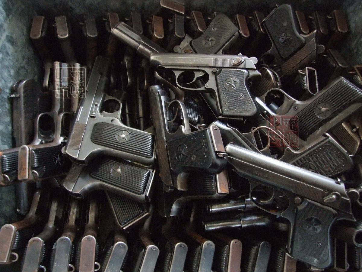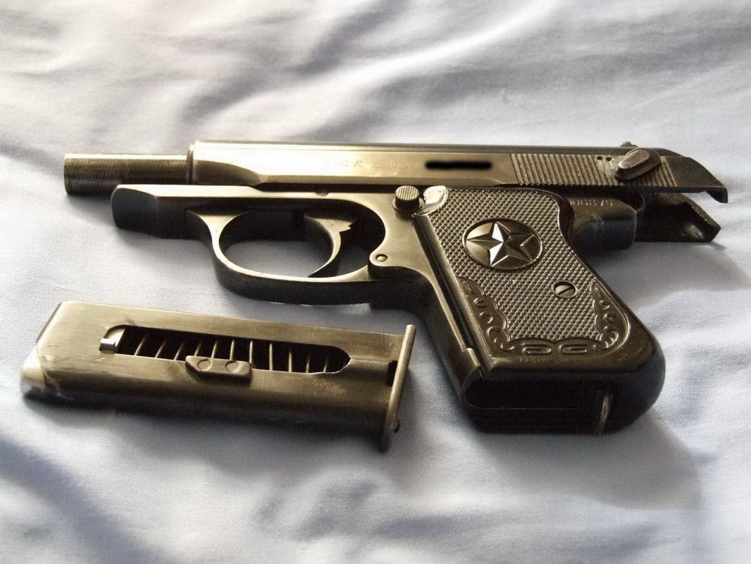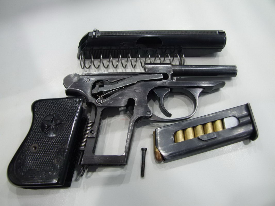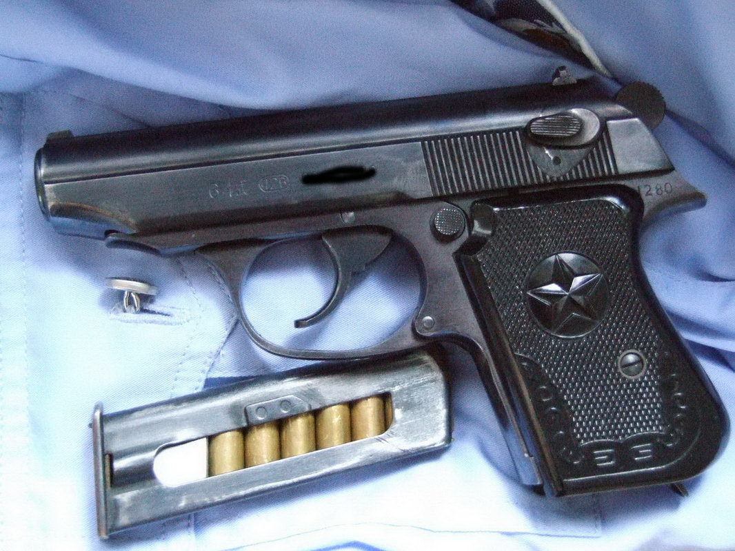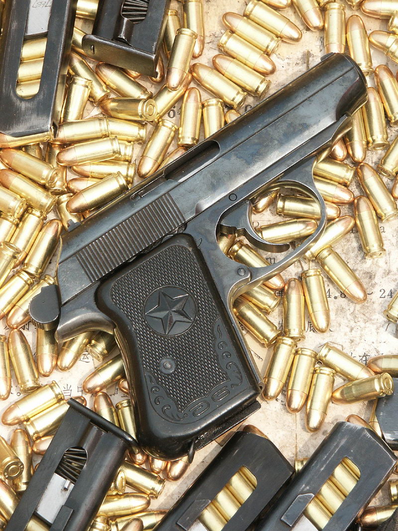 52式手枪也称765公安手枪,是我国早期自行生产的手枪之一,与后来的64式手枪有着密不可分的关系,也可以将其视为64式手枪的前世。建国初期,我人民解放军和广大公安民警武器尚未实现统一化和制式化,主要以各种缴获的武器装备为主,被戏称为万国武器博览会。特别是以短枪为主的公安民警,以各类杂牌手枪作为主要装备,有些武器在国外已经淘汰多年,甚至连弹药都很难收集。而面对当时的形势,除了国民党敌特的破坏外,大量的反动会道门也严重的威胁着新生的人民政权,公安部门和安全部门普遍需要装备新型手枪以统一装备。1951年定型的51式手枪威力较大,但由于朝鲜战争的爆发,51式手枪主要还是装备奔赴抗美援朝前线的志愿军部队。况且51式手枪的体积、重量过大,不适合于便衣警察隐蔽携带。而当时的兵工行业也没有独立自行研制新型武器的能力,直接仿制国外成熟的武器成为最简单易行的办法。经过严格的筛选后,最终决定以德制PPK手枪为蓝本进行仿制。PPK手枪是德国瓦尔特兵工厂三十年代生产一种小型自卫手枪,也是当时世界上性能最优异、装备量最多的小型手枪之一。在多年的战争中,我军缴获过大量的PPK手枪,该枪所使用的7.65×17mm SR手枪弹也是当时非常流行的弹种,因此以PPK手枪为样本生产52式手枪也在情理之中