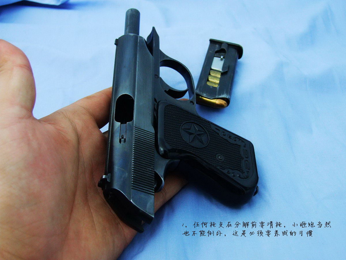 1964年式7.62mm手枪是我国自行研制的第一种手枪,于1964年设计定型,1980年开始批量生产。该枪结构简单、性能优异,主要装备部队中高级军官、人民警察、司法和安全保卫等部门。因此物外形小巧玲珑,便于隐蔽携带,加上其使用的1964年式7.62mm手枪弹装药量较少,射击时声响不大,所以被广大公安民警戏称为“小砸炮”。该枪目前也是我国最常见的警用武器之一,有关该枪的争议颇多,褒贬不一。以下的文章和原创图片均由从警多年且有使用64式手枪实战经验的无悔提供,并特许我转载。这既省了我的时间,也提供了一线警员的经验和感受,特此鸣谢。