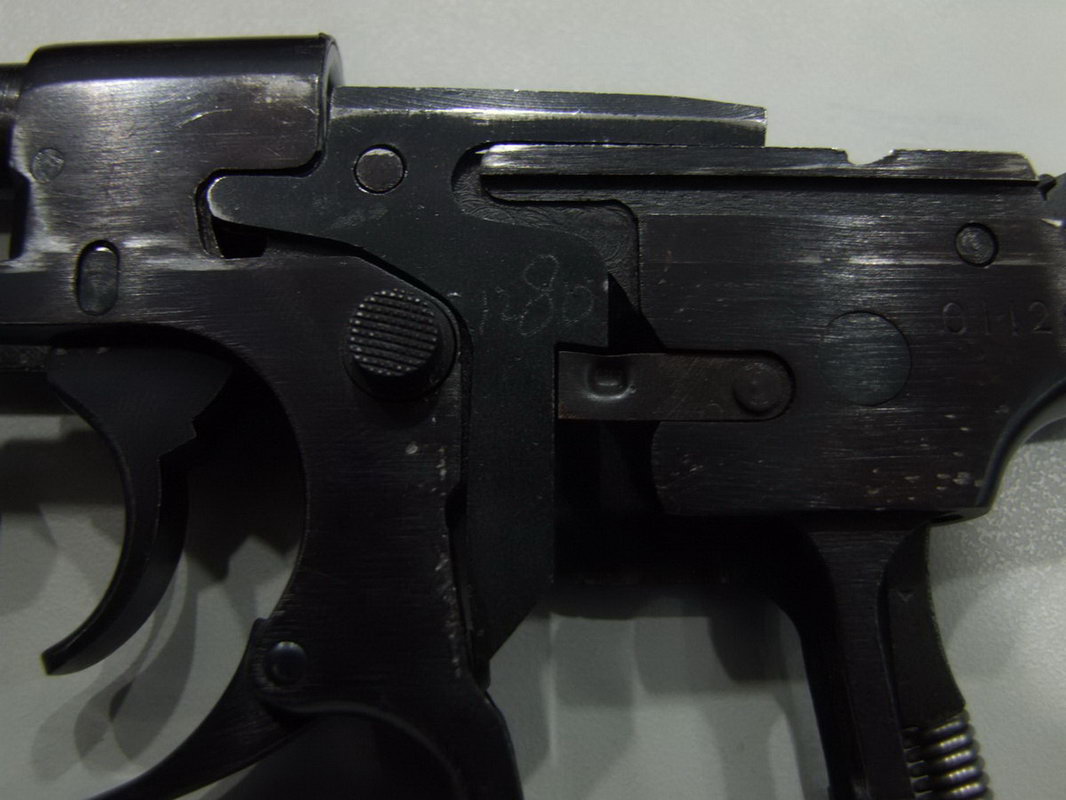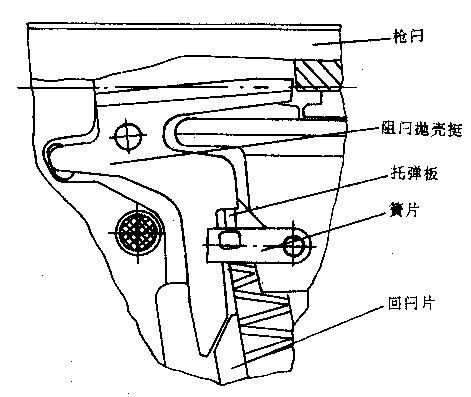弹匣自动回闩(释放套筒)功能:当打空弹匣,阻闩抛壳挺(兼空仓挂机)被弹匣内的托弹板顶起而卡住枪闩(套筒),形成空仓挂机状态,此时只要插入新弹匣,用手掌向上拍击一下弹匣底板,使回闩片斜面与阻闩抛壳挺的斜面作用,迫使阻闩抛壳挺向下转而释放套筒。