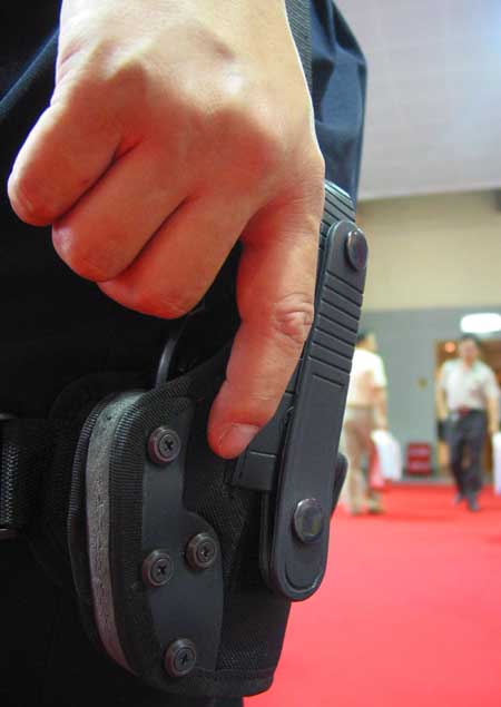 其二,枪底把设计不甚科学。64式手枪属于小型手枪,其体积较小。由于在设计过程中没有为其设计相应的指托,手较大的射手在使用时只能将小指蜷曲在弹匣底部,甚至还有射手要翘起“兰花指”来射击。而很多国外的小型手枪均在弹匣底部设计了指托,如PPK手枪就有这样的设计。塑料制成的指托结构很简单,成本也不高,可由民警自行安装,但是多年以来从未有厂家提供过类似的产品。而枪底把设计上的另外一个问题是:虎口上方的延伸部分过短,在射击时,需特别注意手的握持角度,特别是手比较大的人,后坐的套筒极容易“咬”到虎口。这个先天不足的毛病很难解决,而在52式手枪上却没有类似的问题发生。由此可见该枪在设计上仍然对人机工程考虑得不够充分。