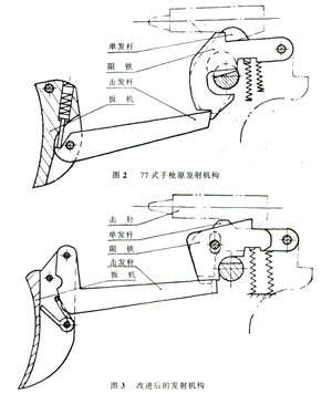 针对这种情况,有关部门对77式手枪进行了研究,发现该枪的发射机构设计不够合理,尤其是阻铁的质量分布不当。在找到原因后,对症下药,改进了发射机构和阻铁,解决了问题。这才使得77式手枪得以安全使用。 1986年,77式手枪荣获兵器工业部优质产品奖,1991年获得国家优质产品金奖。