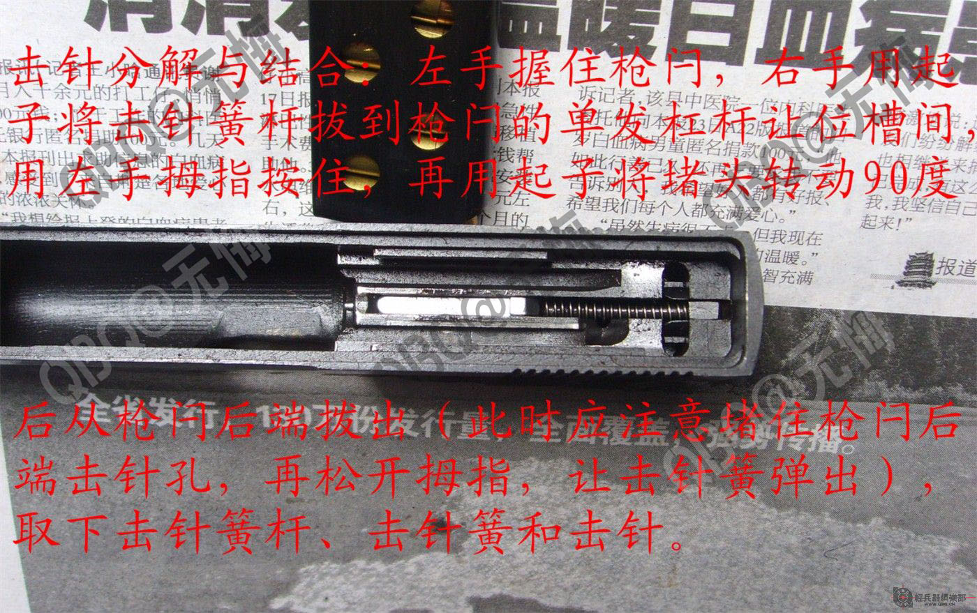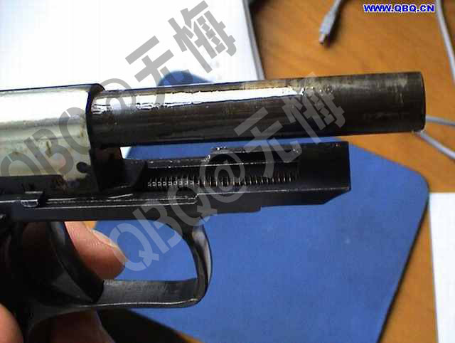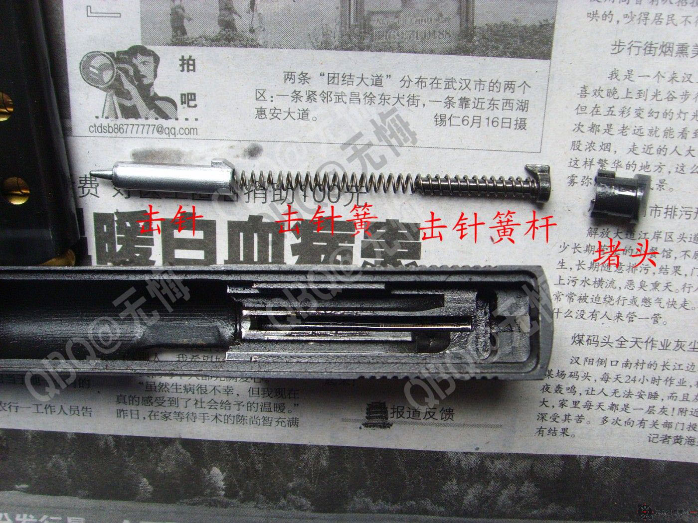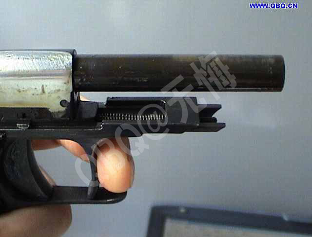(十)喜忧参半的击发方式。77采用击针平移击发结构,理论上说这种结构的射击精度优于击锤结构的手枪,所以精度可能是77唯一的优点,但这种结构的缺点在于:套筒复进时压缩击针簧,由于击针簧容纳空间有限,击针簧易疲劳失效,这会增加出故障的可能性。