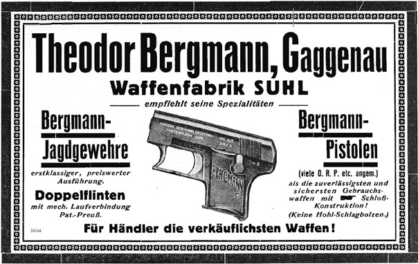 同年,伯格曼公司收购了该项专利,该公司的枪械设计师雨果·施迈瑟参考勃朗宁M1903的工作原理,结合“一只手”系统,设计出了这支造型特殊的“口袋手枪”,命名为利格诺斯(LIGNOSE)手枪。
