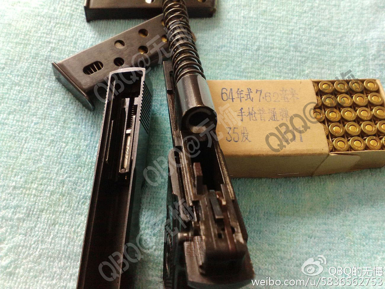 (三)与64式弹匣不能通用。某年,由于枪弹分离的政策,笔者因工作需要去枪库中领取了一支64手枪,弹库的保管员却给了笔者一个77的弹匣,因保管员懒得开柜笔者又不敢得罪(某财部门脾气都很大),只能草草的在枪管中塞入一发子弹以备不时之需,所幸那一夜平安无事。