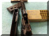 (六)不安全的工作机构和保险。 77的另一个外号就是“走火大王”, 因为采用击发阻铁与击针用挂钩方式咬合,击发阻铁质量集中在回转轴的一侧,在设计制造时虽采用了技术措施保证其工作可靠,弹在长期使用后,工作面磨损,或跌落受冲击时,很有可能出现走火。而其只有一个能够锁住扳机、击针和套筒的手动保险 ,缺乏其它的防止偶发保险机构或者自动保险机构,且保险规则与正常右手使用习惯相反、缺乏顿挫感,如不注意就会被钩挂拨开形成待击状态,所以很多用户从来不敢带一支上好膛的77出去干活。