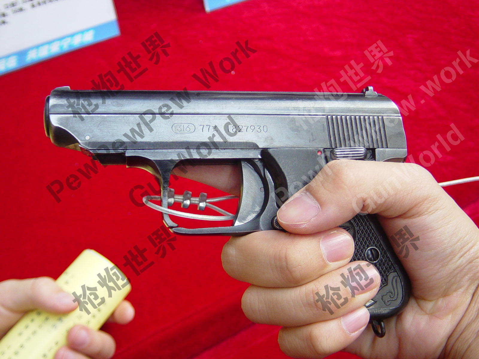 到了1981年,量产不久的77式手枪在一次精度验收时发生了严重的偶发事故:射击中套筒还未复进到位,击针与阻铁自行滑脱而打响了尚未完全进膛的子弹,弹壳在弹膛外炸裂,严重地威胁到了射手的生命安全。