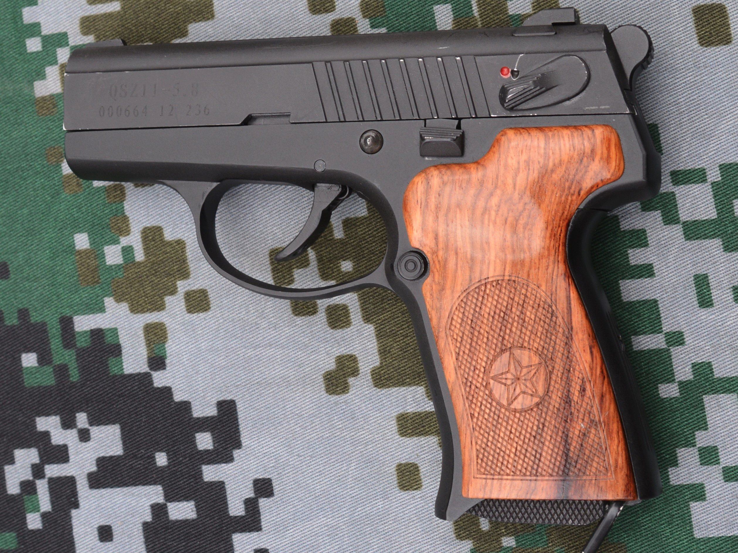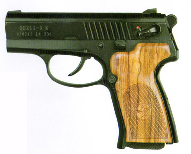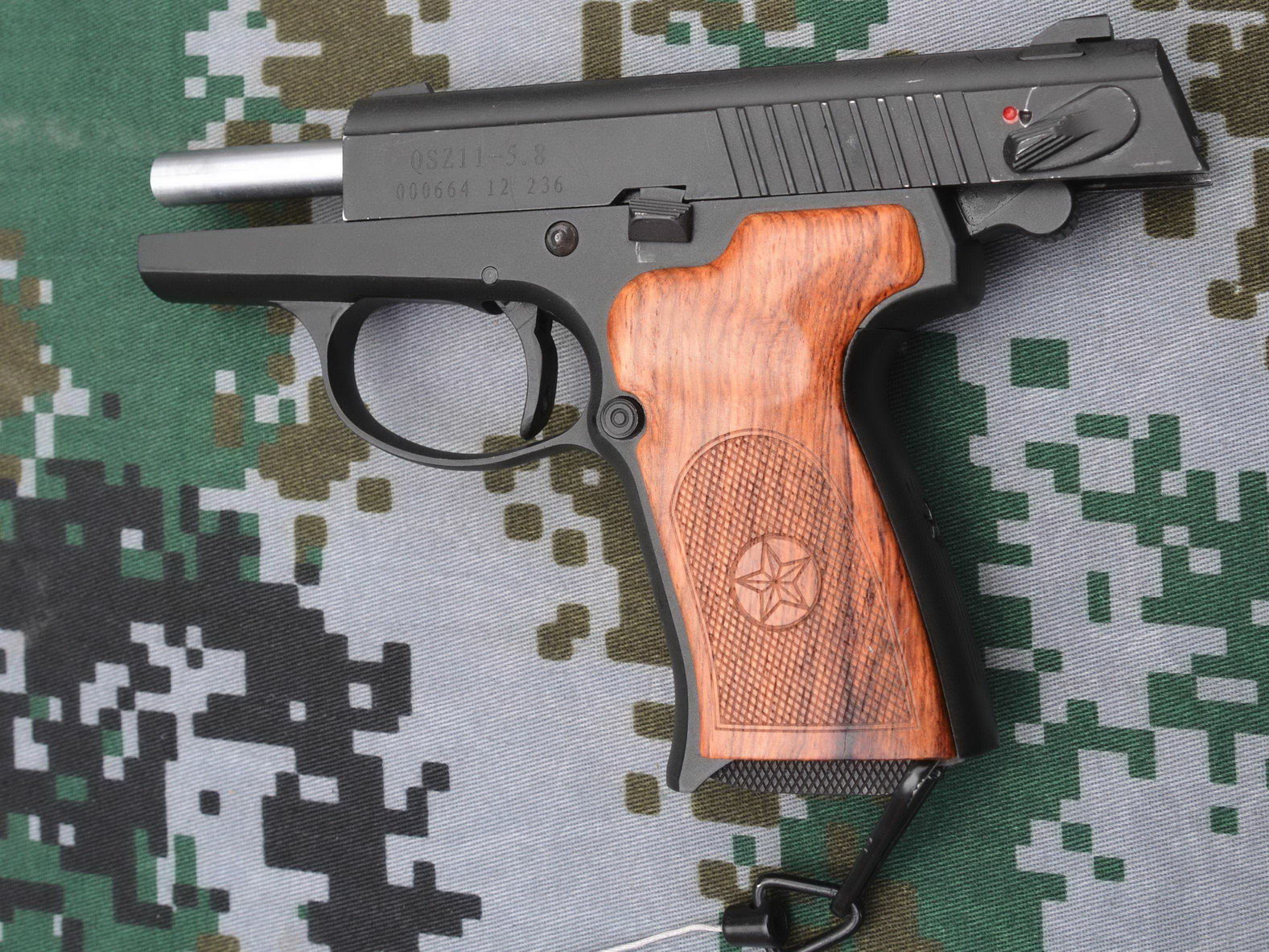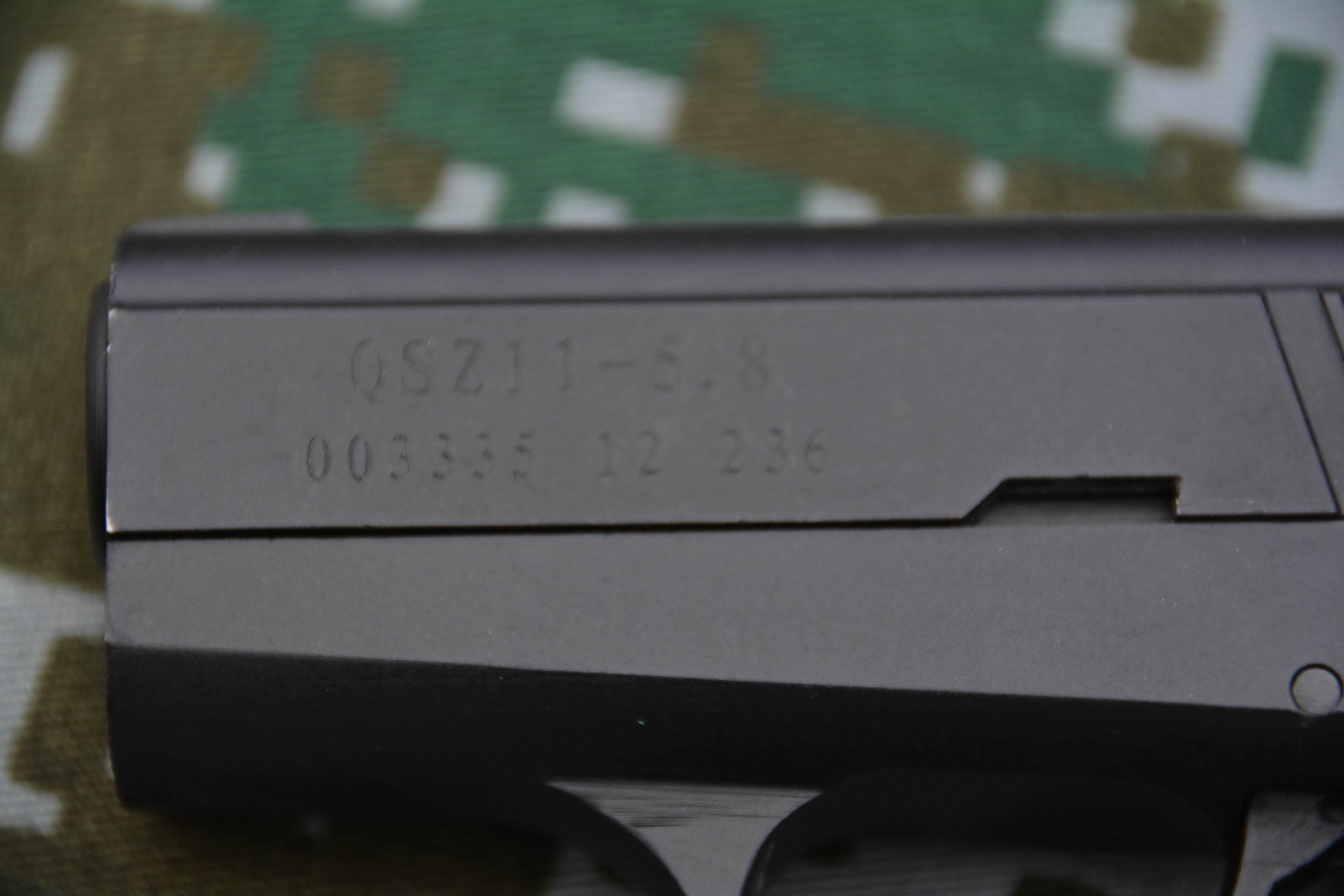 QSZ11式手枪主要装备团职以上军官、执行警卫、侦察等特殊任务的人员,以及飞行员、航天员的自卫武器。该枪于2008年开始研制,2011年定型。采用半自由枪机式自动原理,枪管回转式自动方式,击锤回转式击发方式,单/双动射击。和QSZ92式5.8mm手枪一样,QSZ11只有在击锤待击状态下才可以进入保险状态,保证了使用时的安全和膛内有弹时的快速射击能力。除了手动保险,还设有击针保险和枪机不到位保险,套筒上还有膛内有弹指示器,确保使用的安全可靠。从某种意义上说,QSZ11式就是QSZ92式5.8mm手枪的袖珍型。但由于QSZ11的枪管较短,因此该枪配用的是减装药的DCV05式5.8mm微声弹(但不配消声器)。