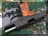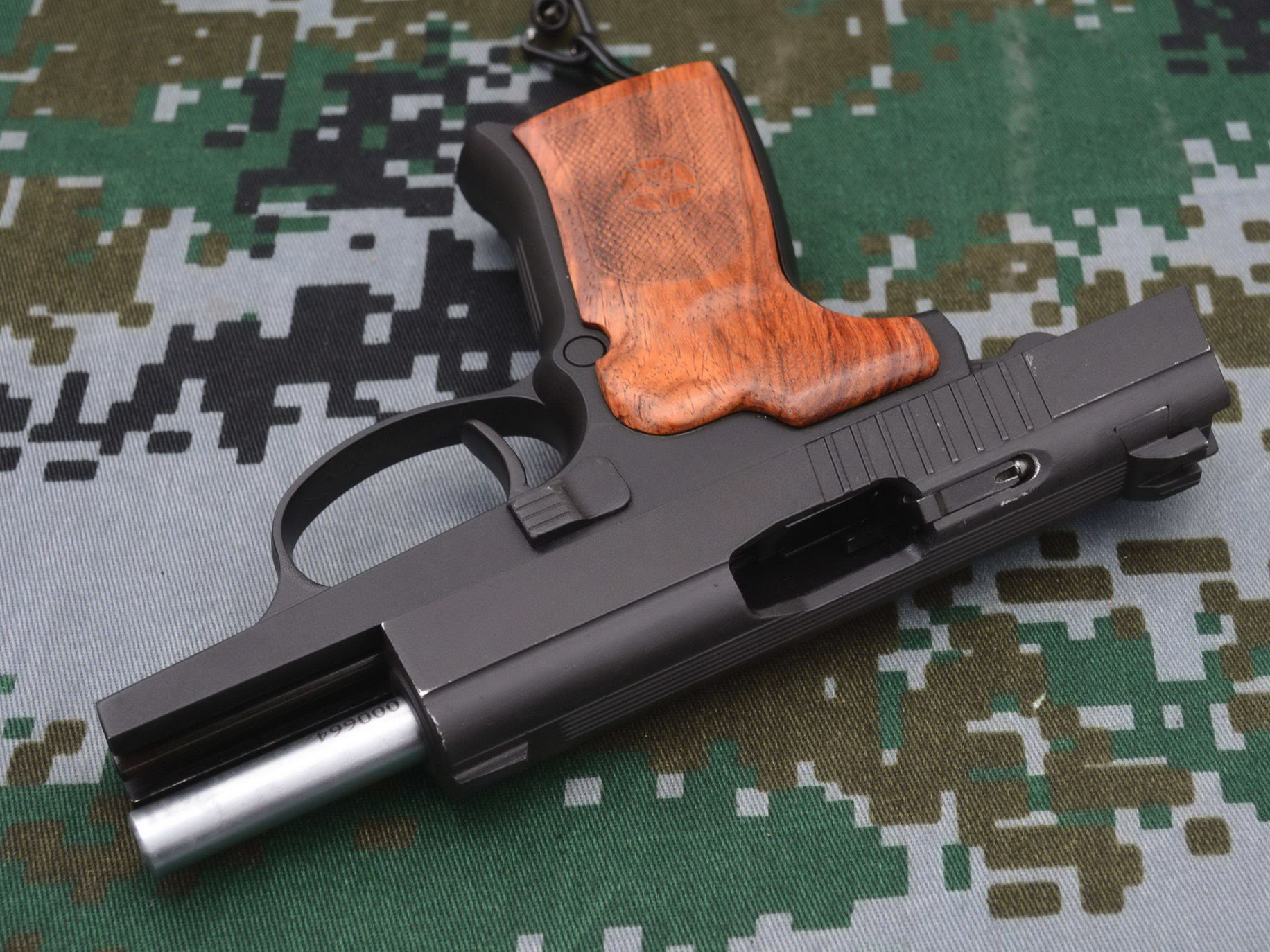 据说在11式手枪设计时首先考虑的是外形,外形设计征询了国内几大知名美术院校多名专家学者的意见,并且首先确定手枪外形的长度比例,再根据这个比例确定套筒长度。在套筒长度确定的情况下再考虑稳定供弹、以及枪管的长度。而 手枪的握把采用胡桃木,并进行了雕花设计,枪套也很有怀旧风,带有明显的上世纪五六十年代的风格,大概就是考虑到该枪更多是作为高官军官的配枪,外形比较重要吧。