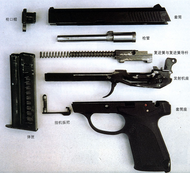 | 资料来源:《轻兵器》2004年第4期[92式手枪系列研制历程]刘铭、沙金龙 《轻兵器》2000年第1期[国产新一代战斗手枪——QSZ92式9mm手枪]王家勇、崔立新 《轻兵器》2001年第6期[中国第一代小口径自动手枪——QSZ92式5.8mm手枪]姚武 《轻兵器》2001年第5期[92式5.8mm小口径战斗手枪系统研制成功] 《兵器知识》2001年第8期[中国手枪“并蒂莲”——92式9mm手枪和92式5.8mm手枪]徐斌 根据互联网公开资料 |