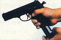 ![]() 2-按弹匣扣,取下弹匣 |