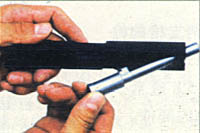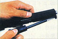 ![]() 3-用弹匣底部平击套筒卡笋,将其顶松 |