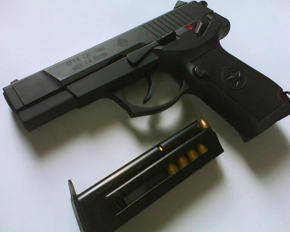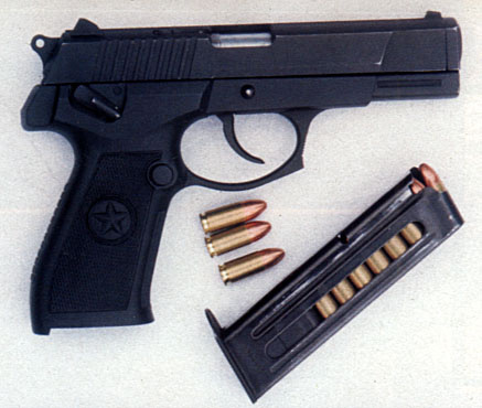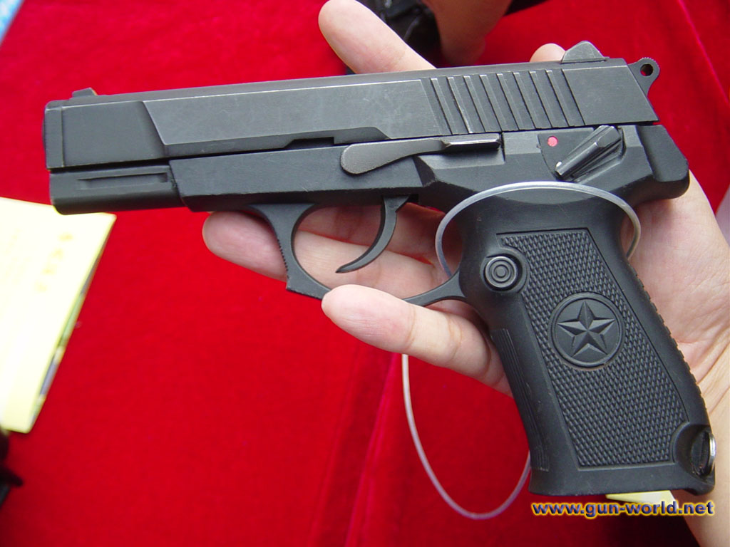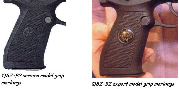 92式9mm手枪的出口型,注意下图中与国内型的握把标志区别
