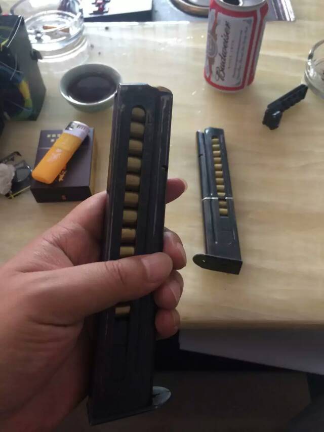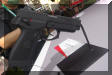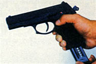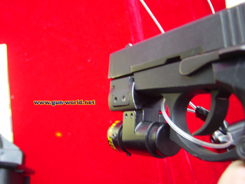 此图为国内装备型(图左)和出口型(图右)的握把对比,出口型的握把上用北方工业的标志代替了五角星,92式9mm手枪的出口型大概在2002年初就已经在国外有展示(或只是图片宣传),国外的人估计如果2005年或2006年美国政府使禁止进口中国轻武器的法令自动失效的话(就像2004年让禁止突击武器法失效一样),北方工业将会让92式9mm手枪进入美国民间市场。但事实上是,这张图可能只是一个在出口市场上的展出型而矣,92式手枪的外贸型还没有开始投产,因为其主要性能距离外商要求还差得很远。这可能是由于设计要求不同的原因。因为我军对手枪持续射击能力要求较低,士兵并不需要多带后备手枪弹匣,而且对手枪的寿命要求也较低。而国外警察却要携带较多的备弹,而且对手枪寿命要求很高。