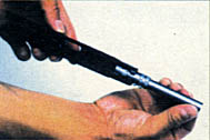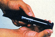 ![]() 3-用弹匣底部平击套筒卡笋,将其顶出 |