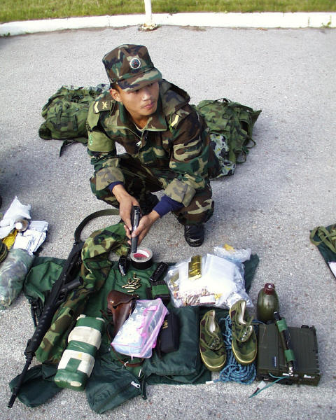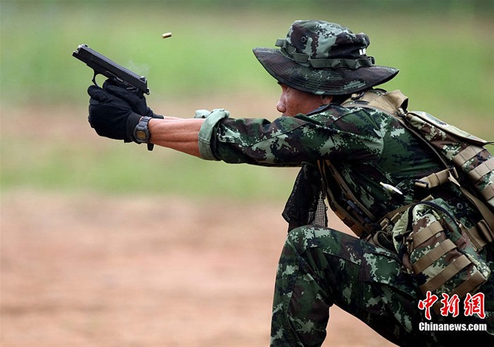 2010年与泰国海军陆战队联合演练活动中,中泰士兵互相交流使用对方的手枪