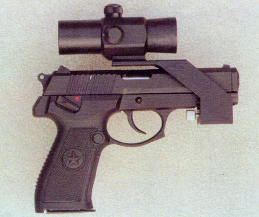 在2000年内所公布的早期型92式9mm手枪,准星位于枪口帽上