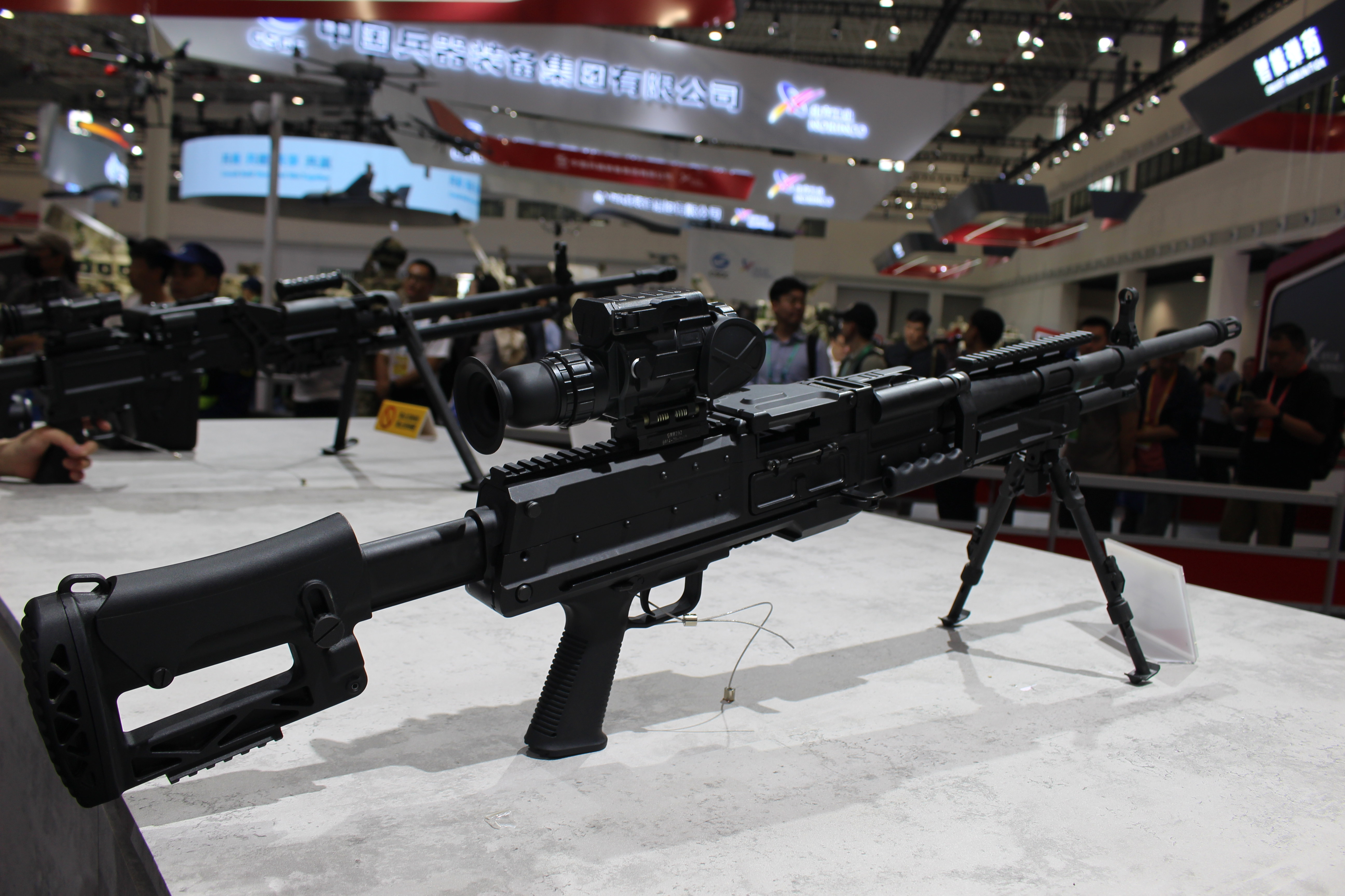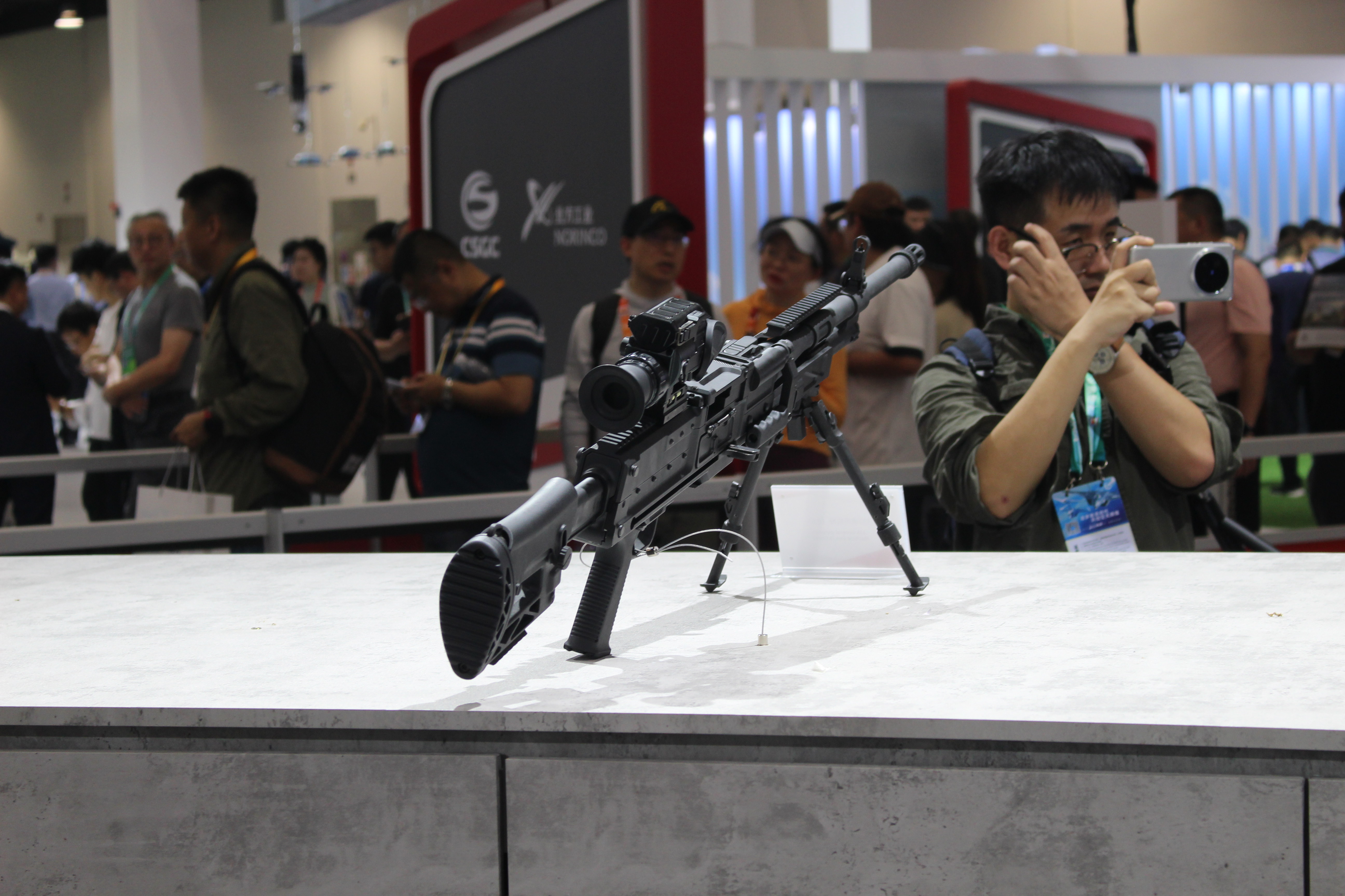 8.6mm口径(即.338)通用机枪的传闻其实一直有,不过在2024年珠海航展上首次展出后,得以证实它的存在。目前该枪的相关信息不多,机匣上也没有暂时型号名称,但从展出样品来看,结构原理与QJY201通用机枪相近,所以应该也是与QJY89式重机枪相近的管退与导气混合的自动方式。无独有偶,美国的SIG MG338和RM338也同样采用了类似的混合动力。