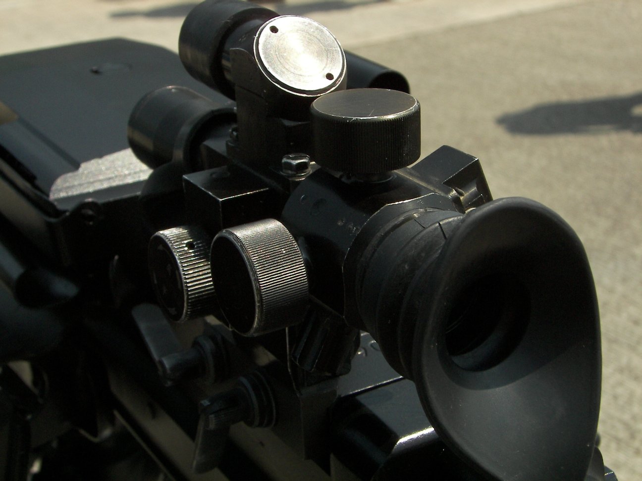 89式重机枪安装有机械瞄准具,还配有白光瞄准镜、微光瞄准镜两种。由于12.7mm重机枪经常要射击超过1公里的目标,低倍率的瞄准镜有助于射手迅速寻找、瞄准这些目力范围以外的目标,而且能减少瞄准误差,该白光瞄准镜还具有体积小、重量轻、高平射瞄准转化迅速、校正方便等优点;而微光瞄准镜性能优越,作用距离远,瞄准精度高,在无月光星空条件下,能识别350米距离上的单个士兵及800米距离上的轻型装甲目标。