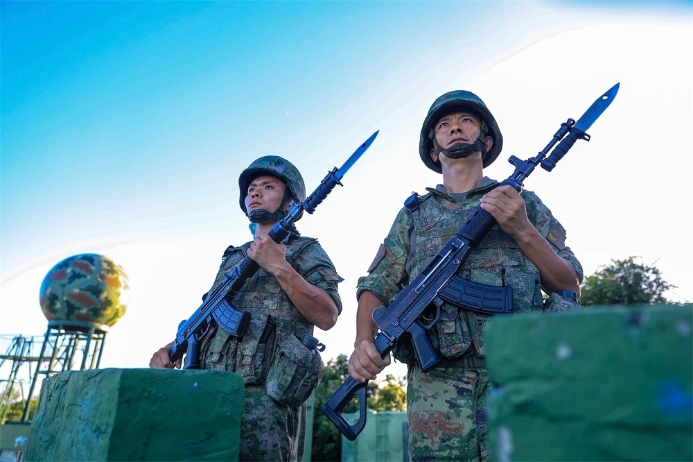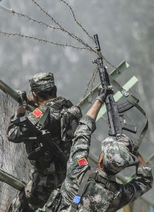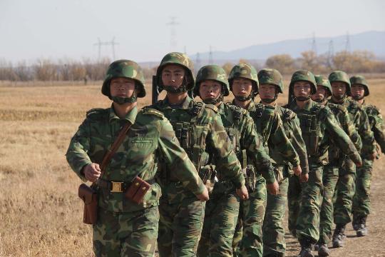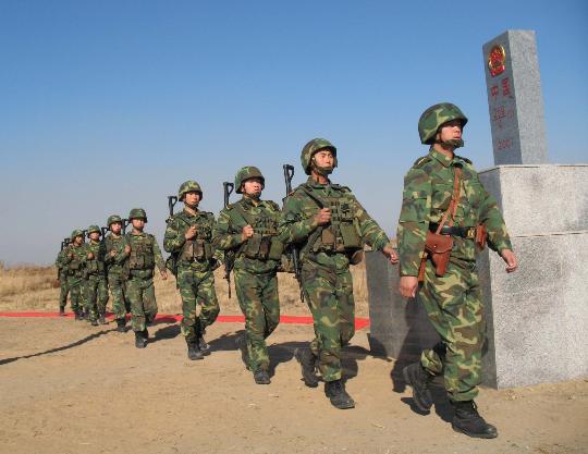 在黑瞎子岛覆行防务任务的边防部队,背负的是03式步枪。不过他们挂的山塞MBSS造型比较雷人,可能是我看惯了塞防弹板和地图袋挂在胸前的MBSS造型吧。
