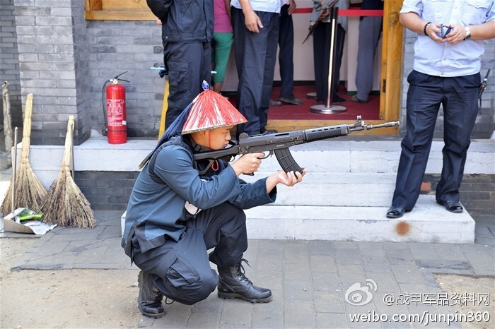 在北京2011年警用装备展上的03外贸型安装了皮卡汀尼导轨护木