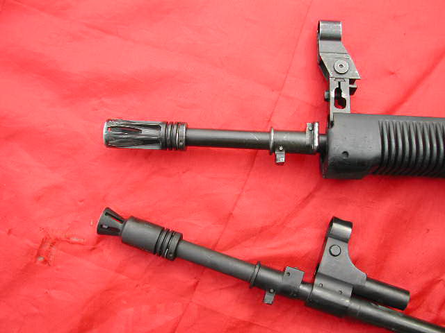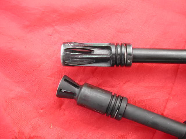 在众多非议中,关于消焰器的争议最多,许多人都认为喇叭口不如鸟笼形好看。但事实上这个消焰器是经过多次试验摸索才最终确定的,并不是设计师心血来潮的作品。对于长度在这个范围的枪管来说,5.8mm弹的膛口压力比5.56mm弹要高,如果采用其他膨胀式装置(例如AKS-74U式的)的直径都会超过发射枪榴弹的标准,因此不太可能改成类似于M16的鸟笼形或其他类型。以FN MINIMI为例,喇叭口消焰器在抑制火光和扬尘效果方面都优于鸟笼形,但为了和M16A2通用,美军的M249才最终改用了M16A2的消焰器。QJY88式通用机枪的消焰器也是仿MINIMI的,在试验中发现机枪的枪口焰比QSZ92式手枪的还要小。而对比一下03式自动步枪和QBU88通用机枪的图片,不难发现两者消焰器的相同之处,设计成喇叭口式的消焰器是符合“外形服从功能”原则的。95式的消焰器在外观上让人觉得像M16的鸟笼型,但仔细看看,就会发现其实其内部形状也是喇叭口,只不过95式的喇叭口要细长些,在外部 又有几条加强筋来增加强度,所以外形上看起来是直筒形。但这种加强筋很容易碰坏,而且后部与枪管连接的过渡也太短;另一个重要原因是:95式的消焰器是由精铸成形的,但国产铸件质量不高,与其给铸件铰孔,不如像03式这样直接车出来还好,既可以节约成本,又保证生产质量。但反过来,03式的机匣倒是比95式难生产了。