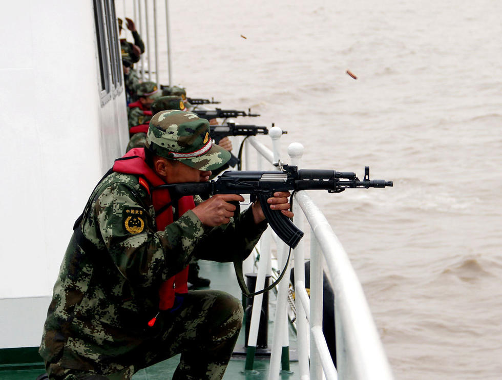 2014年4月浙江海警在海上实弹射击训练中使用的QBZ56C