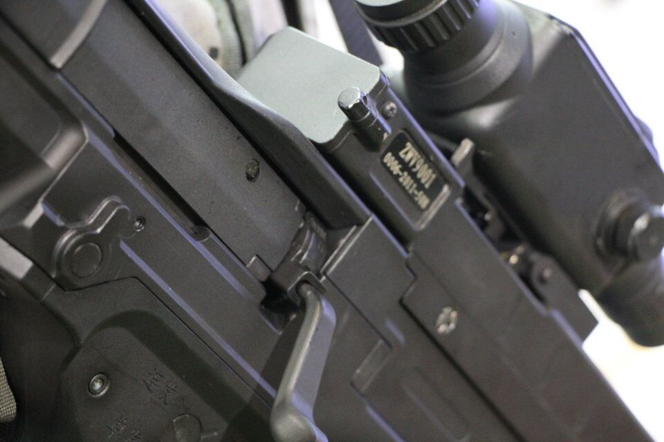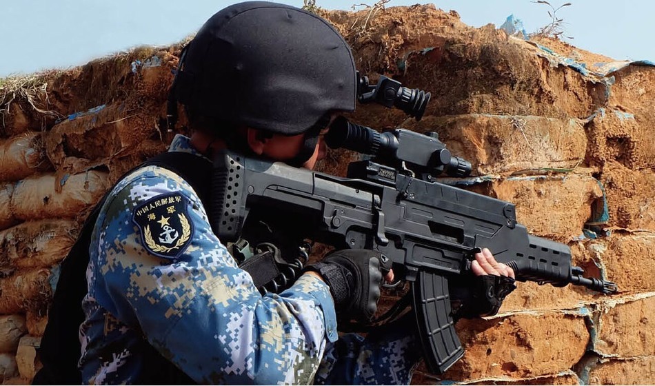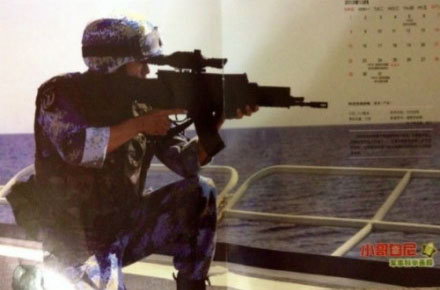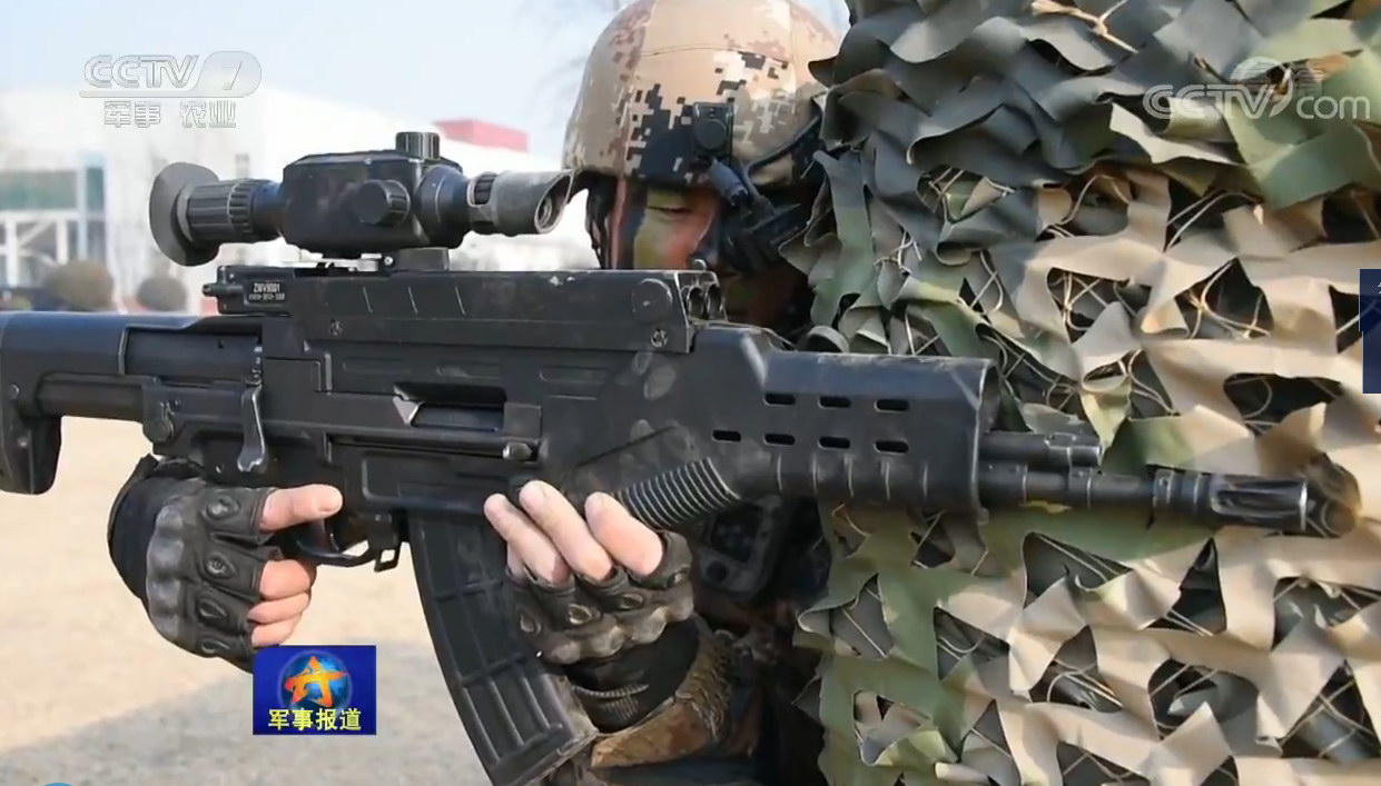 网友曝光的整体枪箱,据说这一支就是南海舰队试用的,它的火控系统是通过机匣顶部的导轨安装,也可以更换成普通的瞄准装置