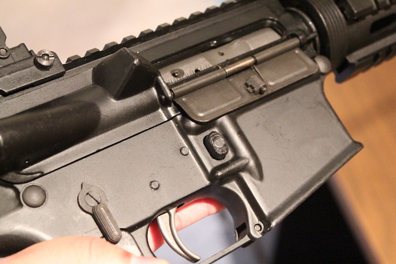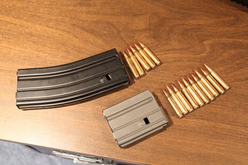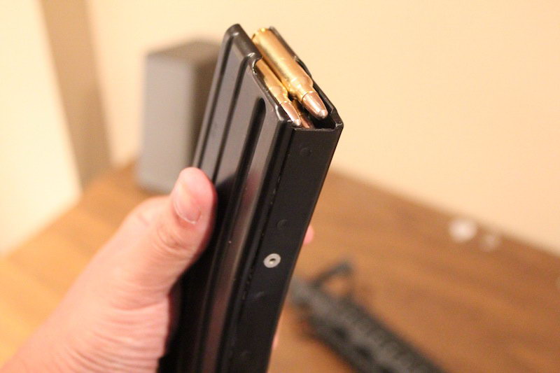 5发容量弹匣的外形是30发的,银白色的销子是一个限位器,如果把它改成30发是违法的