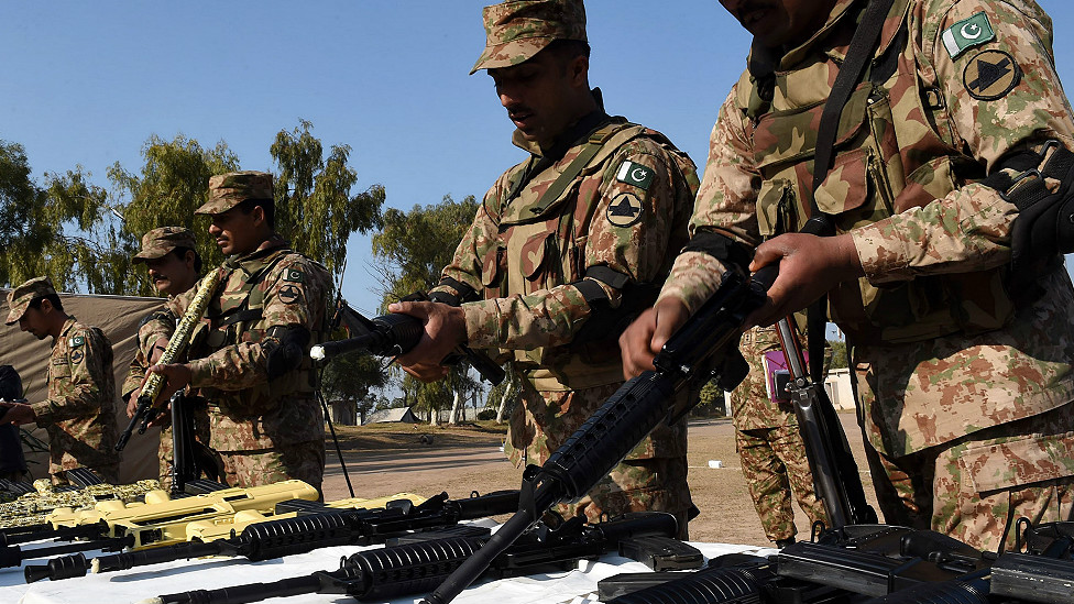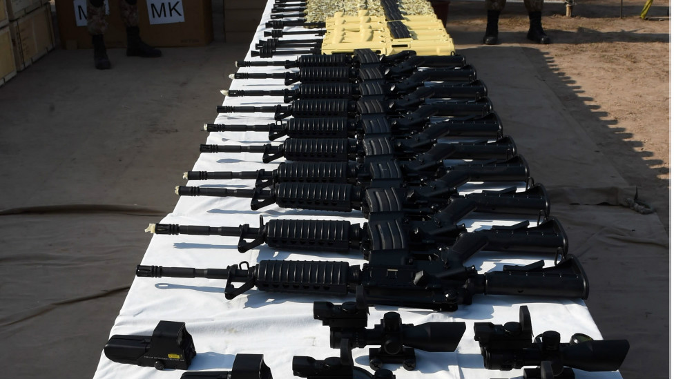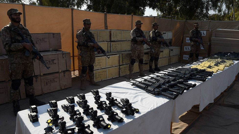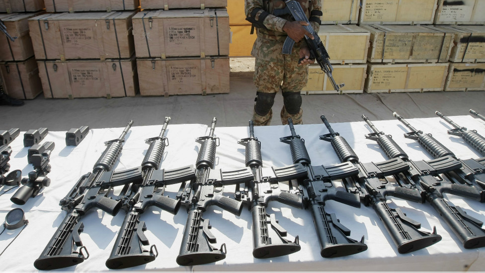 2016年1月27日,巴基斯坦白沙瓦展示所缴获的走私武器,都是针对北美和欧洲市场的民用型,包括CQ-A(M4)和T97NSR、T97BSN等