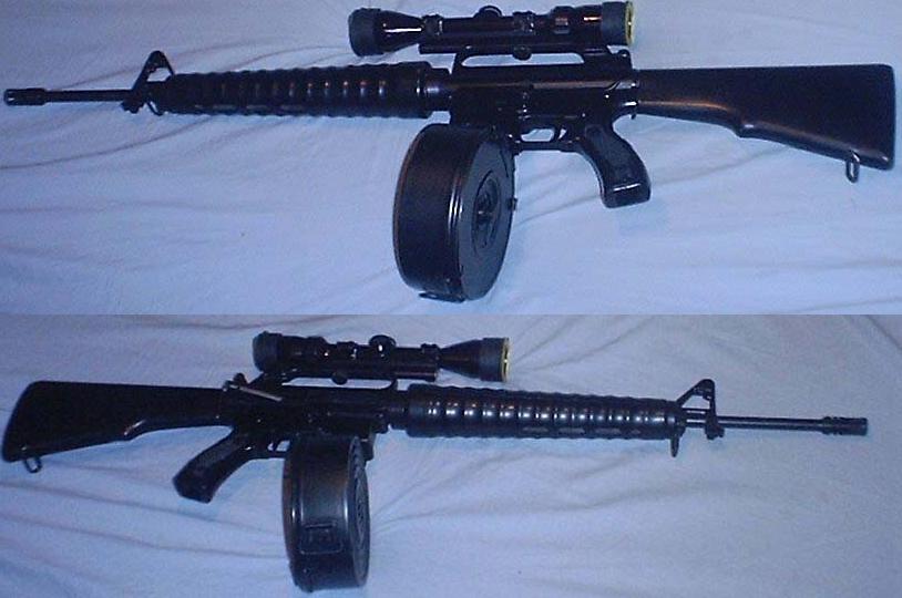 民用型M311,注意此枪安装一种90发的弹鼓,这是国产(多数在626或356厂生产)源于81式班机的快装弹鼓的5.56mm口径型