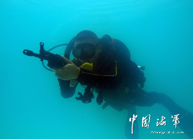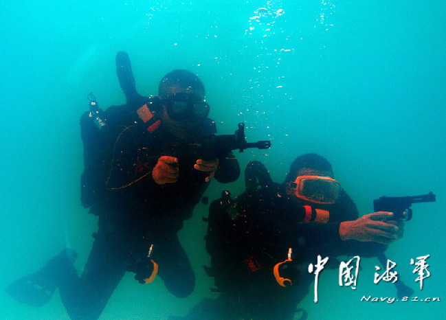 关于国产水下步枪和手枪的流言,其实已经有好几年。据说这是通过对俄罗斯的APS和SPP-1的实物进行测绘仿制而来的。水下步枪的口径为5.8mm,在2010年1月23日CCTV的一个节目里也有过不甚清晰及全貌的镜头。后来在中泰联合军演的武器展示台上也曝过光。可是居然没记者注意到这把枪去拍摄更多的细节