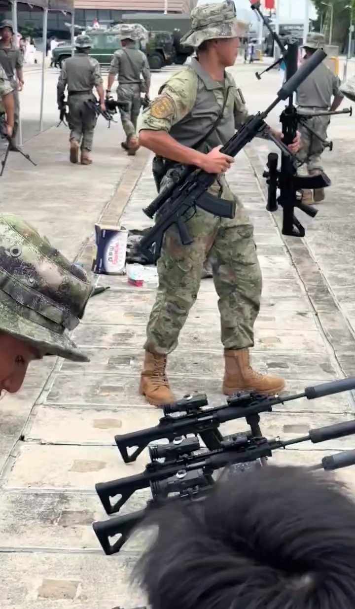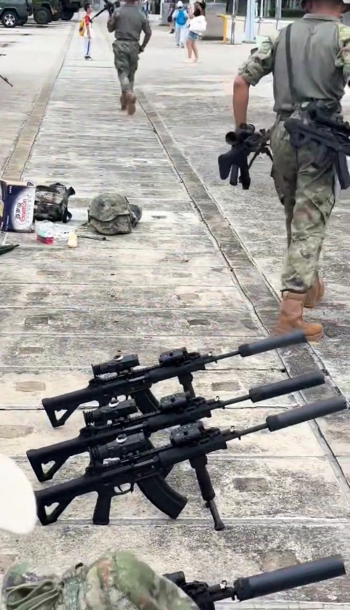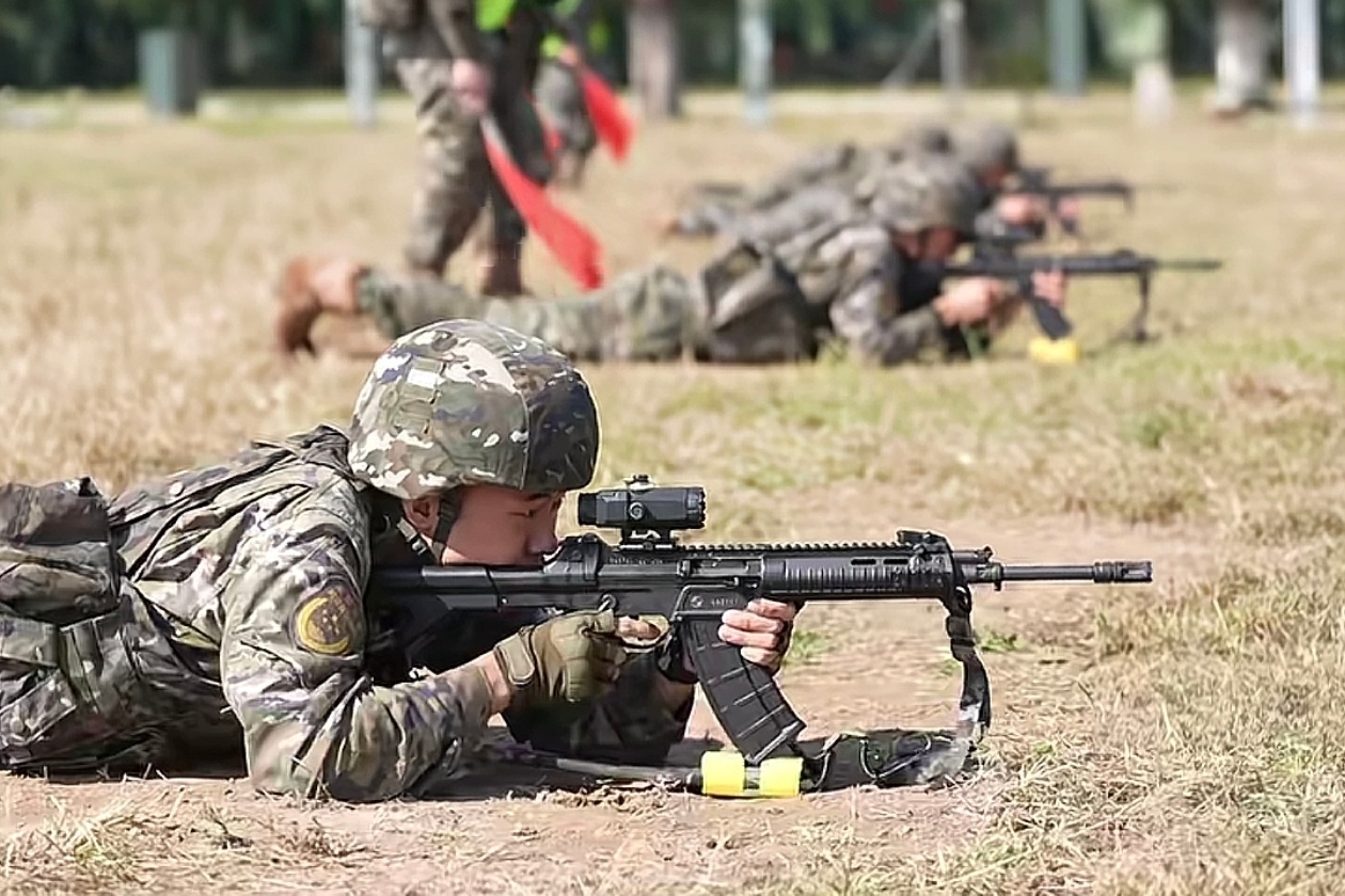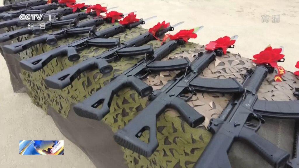 2021年海军陆战队的一张照片,图中从左到右分别为:QBZ192、QCQ171、QBZ192、QJB201和QBU191