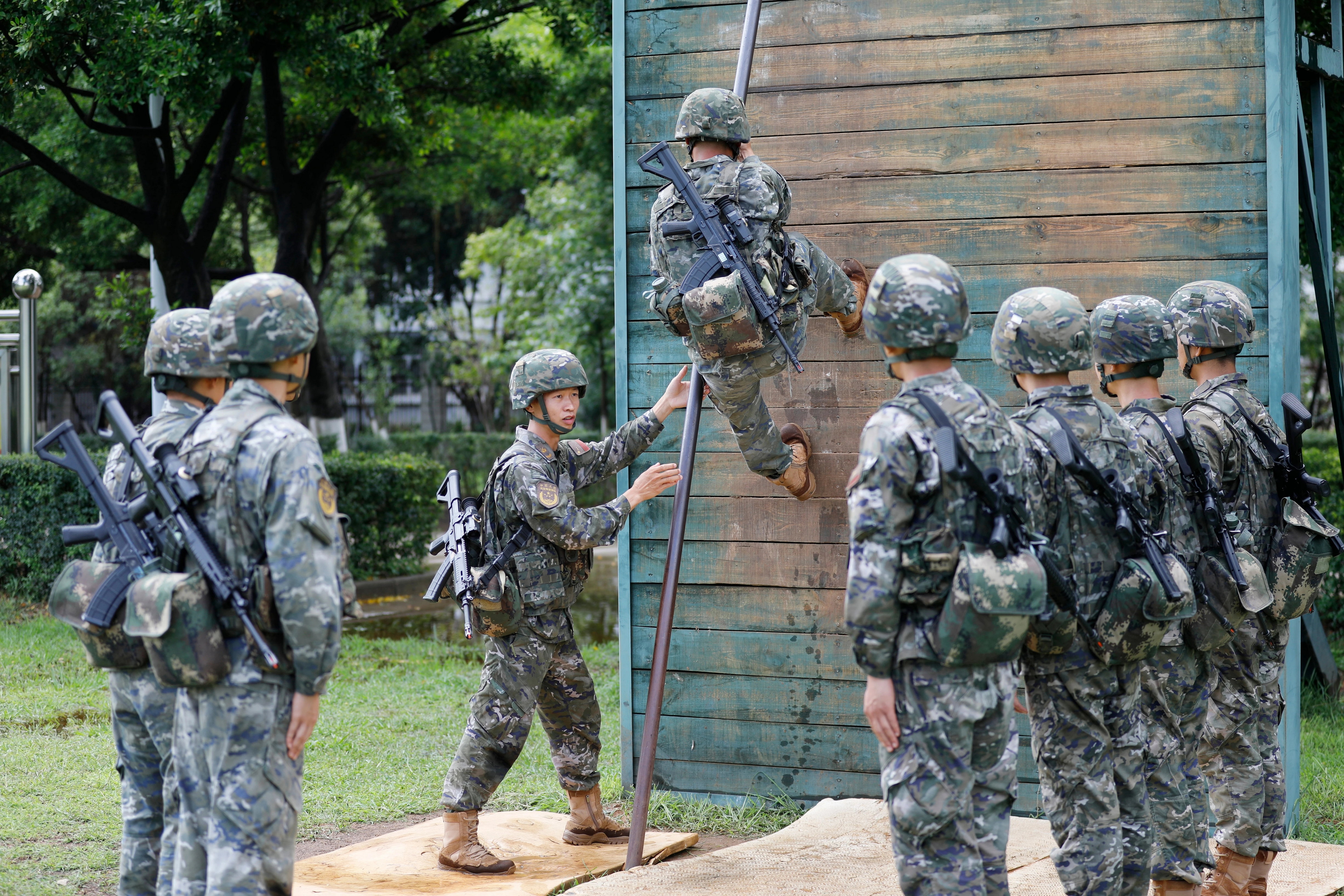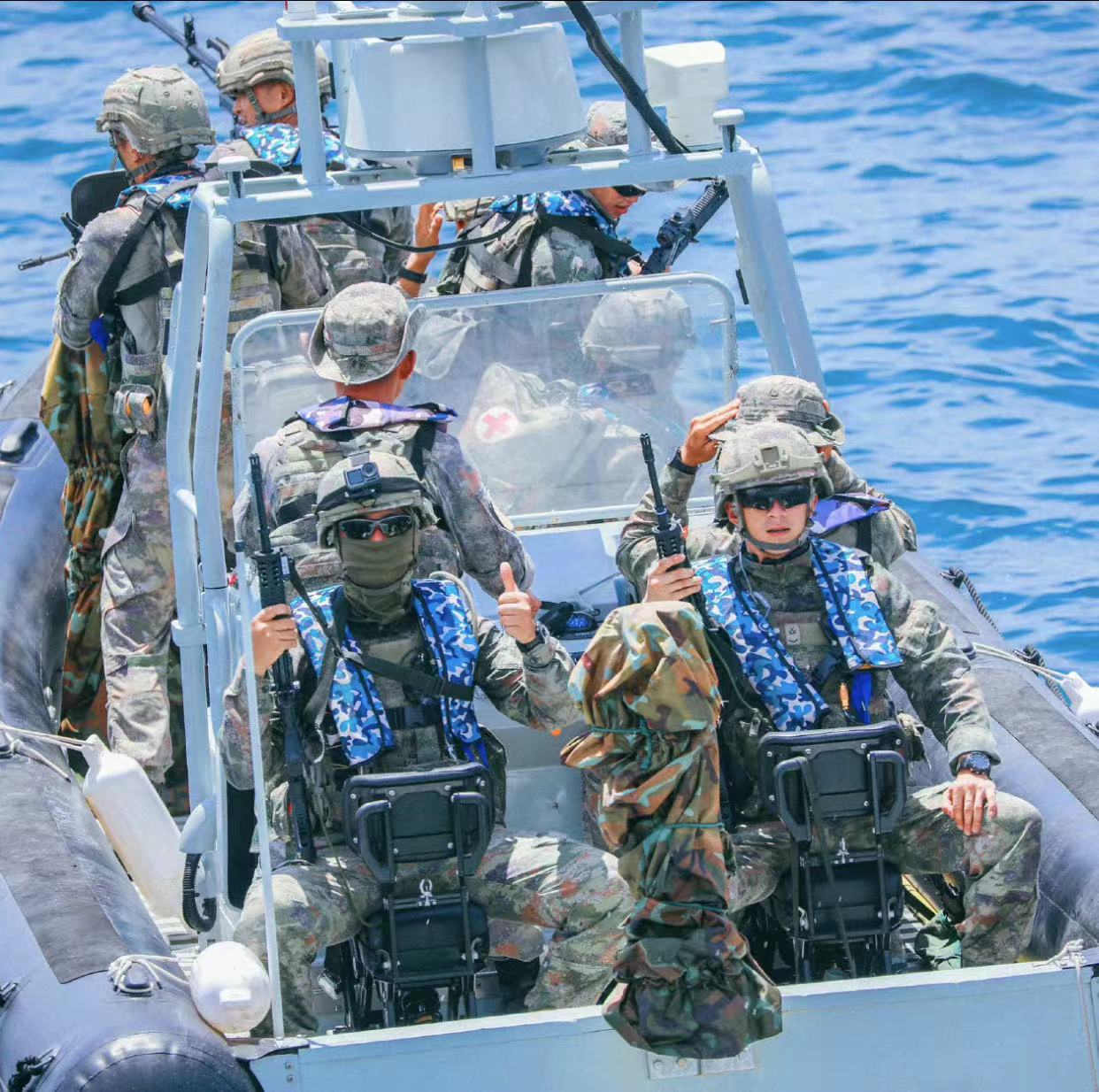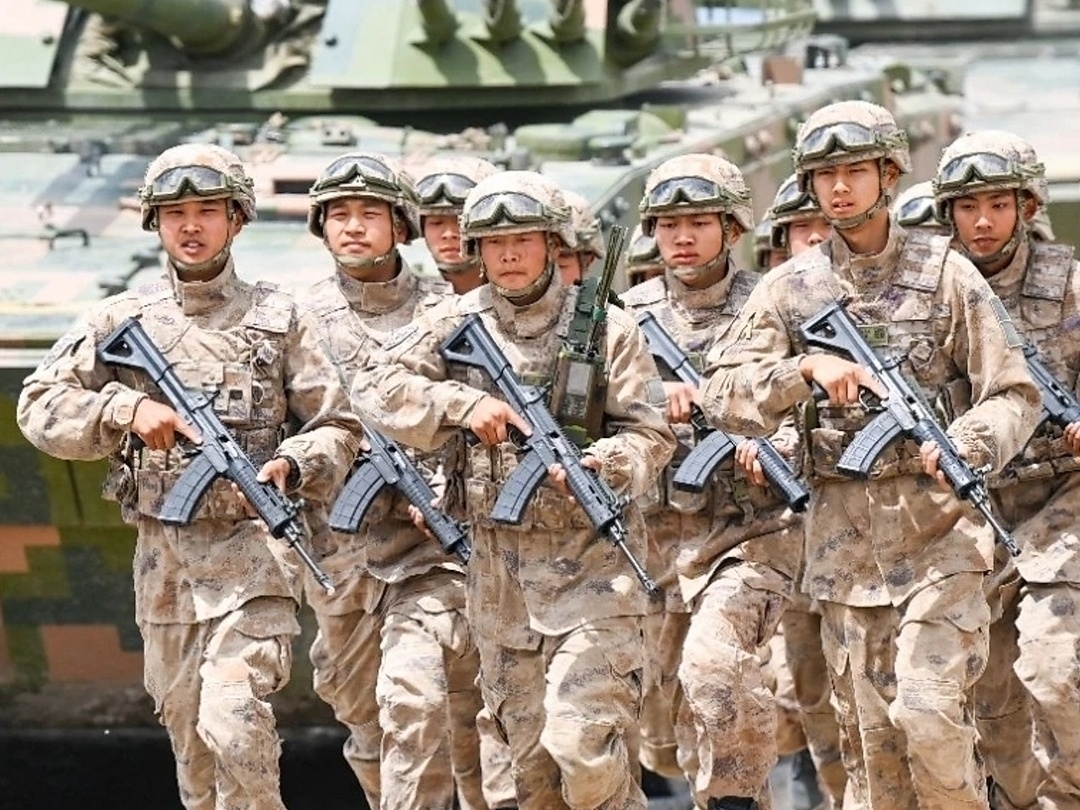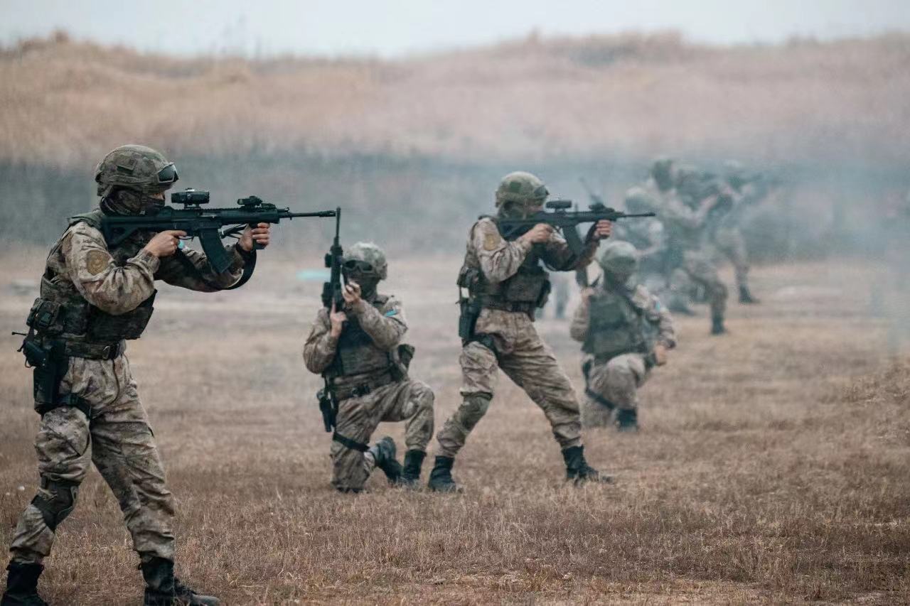 2021年海军陆战队的一张照片,图中从左到右分别为:QBZ192、QCQ171、QBZ192、QJB201和QBU191