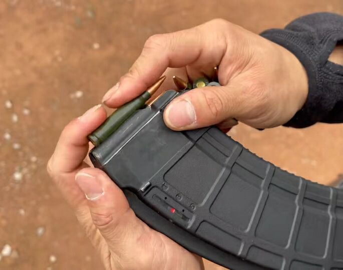 ![]() 弹匣上部的观察窗和金属材质抱弹口 |