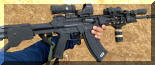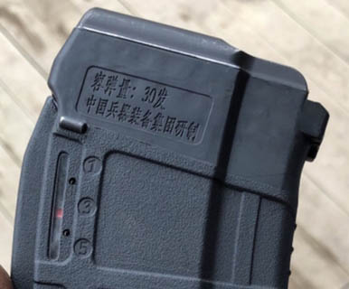 弹匣依然是前钩后挂式,这种设计的优点是安装十分牢固,比起直插式更能承受暴力对待,缺点则是操作起来速度比直插式要慢。弹匣看起来与95-1式是一样的,但通过高清图片分析发现在弹匣体上方有一个透明观察窗,并采用与PMAG类似设计的方式在托弹簧上做颜色标记,根据标识对准观察窗上的相应数字,可知道最后5发弹的余弹情况。另外新弹匣虽然是聚合物制成,但抱弹口则是金属材质。至于弹匣卡笋则采用类似CMMG MK47的设计,延长并加宽右侧,使扣扳机的手指能够得到弹匣卡笋从而实现快速释放弹匣的动作。