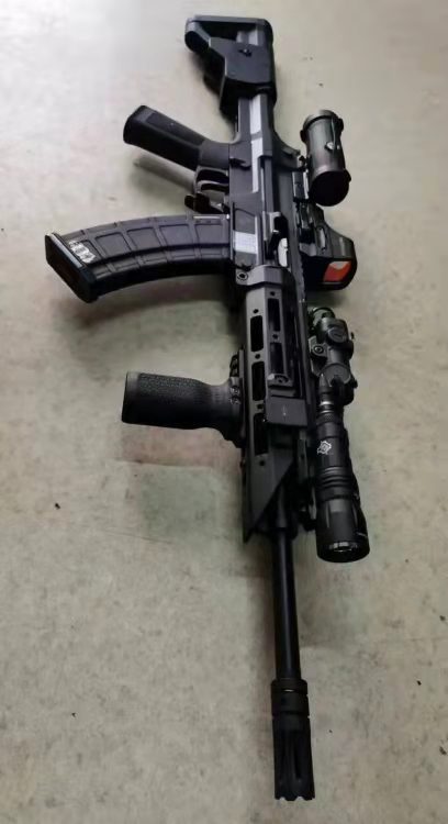 总体结构上,该枪是参考了HK416的设计:采用上下机匣结构,连接是通过弹匣插槽前部与机匣尾部的固定销完成。自动原理为短行程导气活塞,复进装置在枪托内。