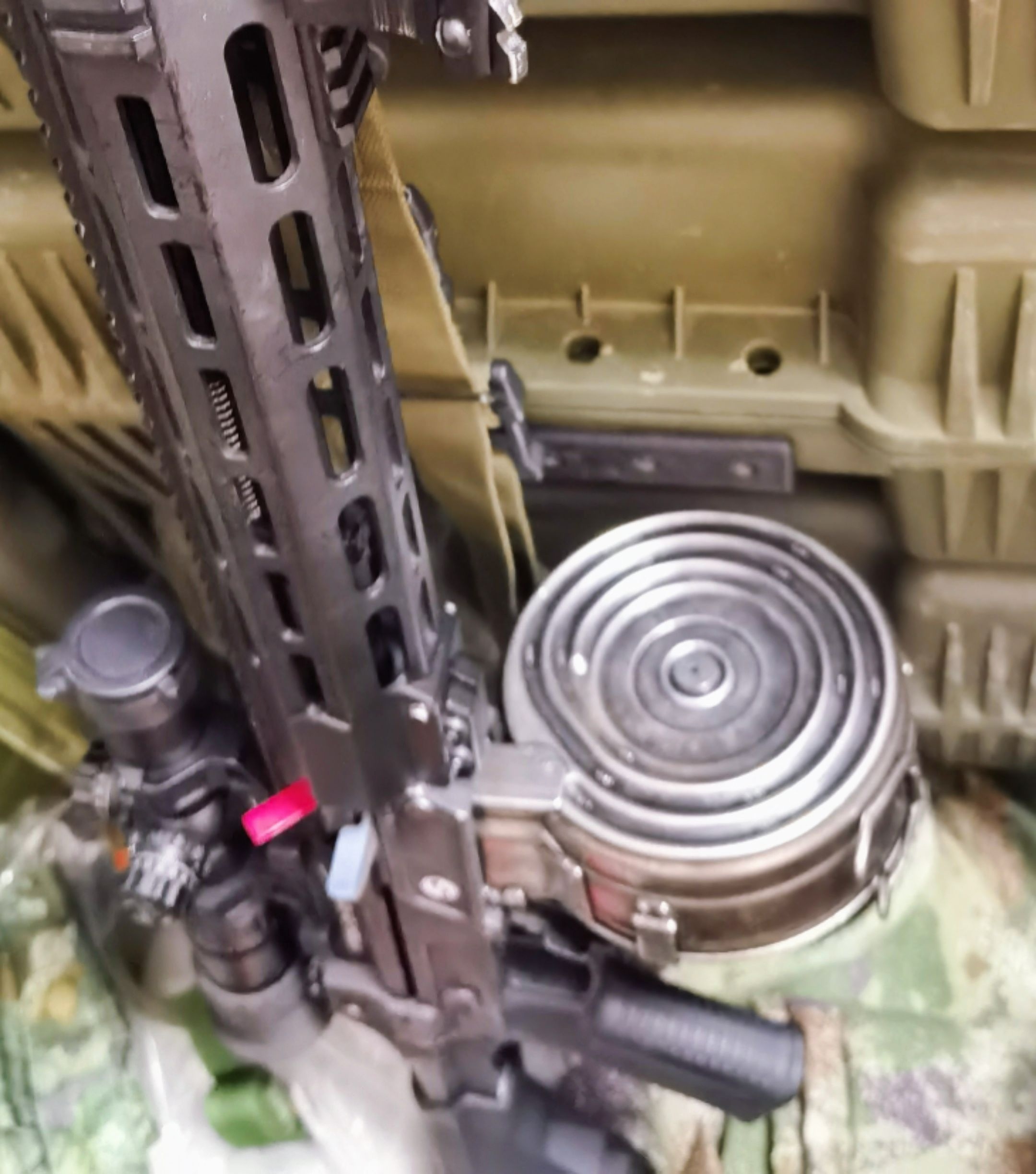 央视军事的铁师傅在2026年3月25日的节目《无人之竞》中,曝光了一种用于191枪族的新弹鼓,据说容量是100发