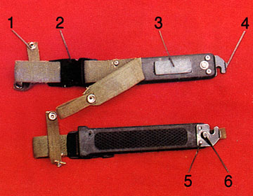 ![]() 1-挂带;2-带扣;3-磨刀石;4-瓶口起子;5-剪板座;6-轴 |