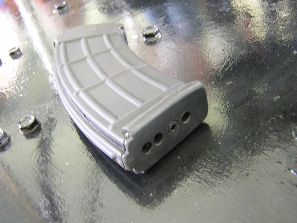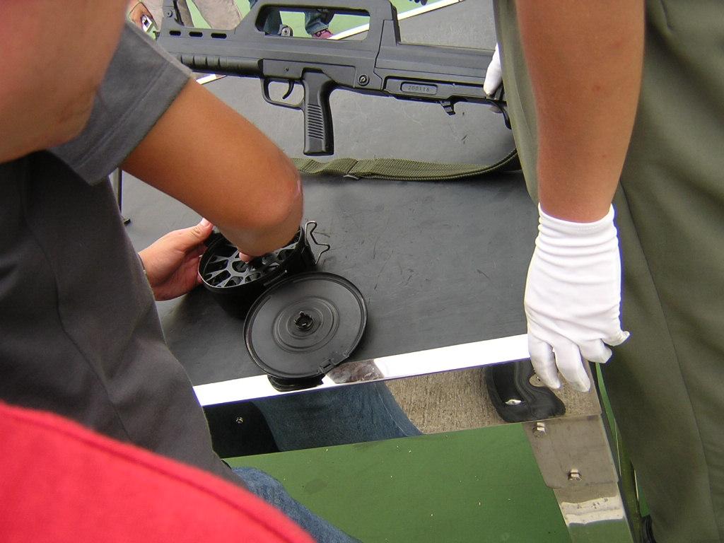 由于发射空包弹时,火药燃气是在向半开放空间膨胀,因此膛压很低,难以完成自动装填的循环动作,所以就需要在枪口中加装助退器,迟滞火药燃气从枪口溢出,提高膛内压力,使自动机获得足够能量完成自动循环。
