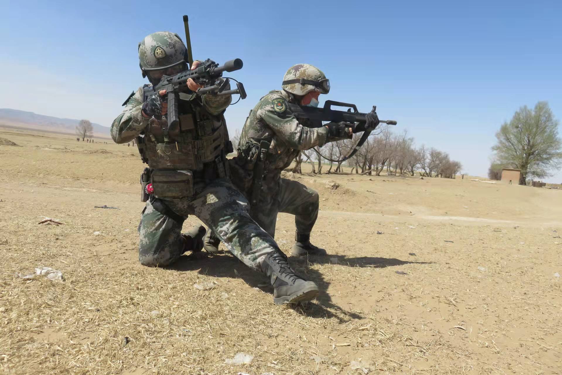 装备QBZ95B-1追捕阿克苏拜城煤矿杀人事件中的暴恐分子的乌鲁木齐市公安特警