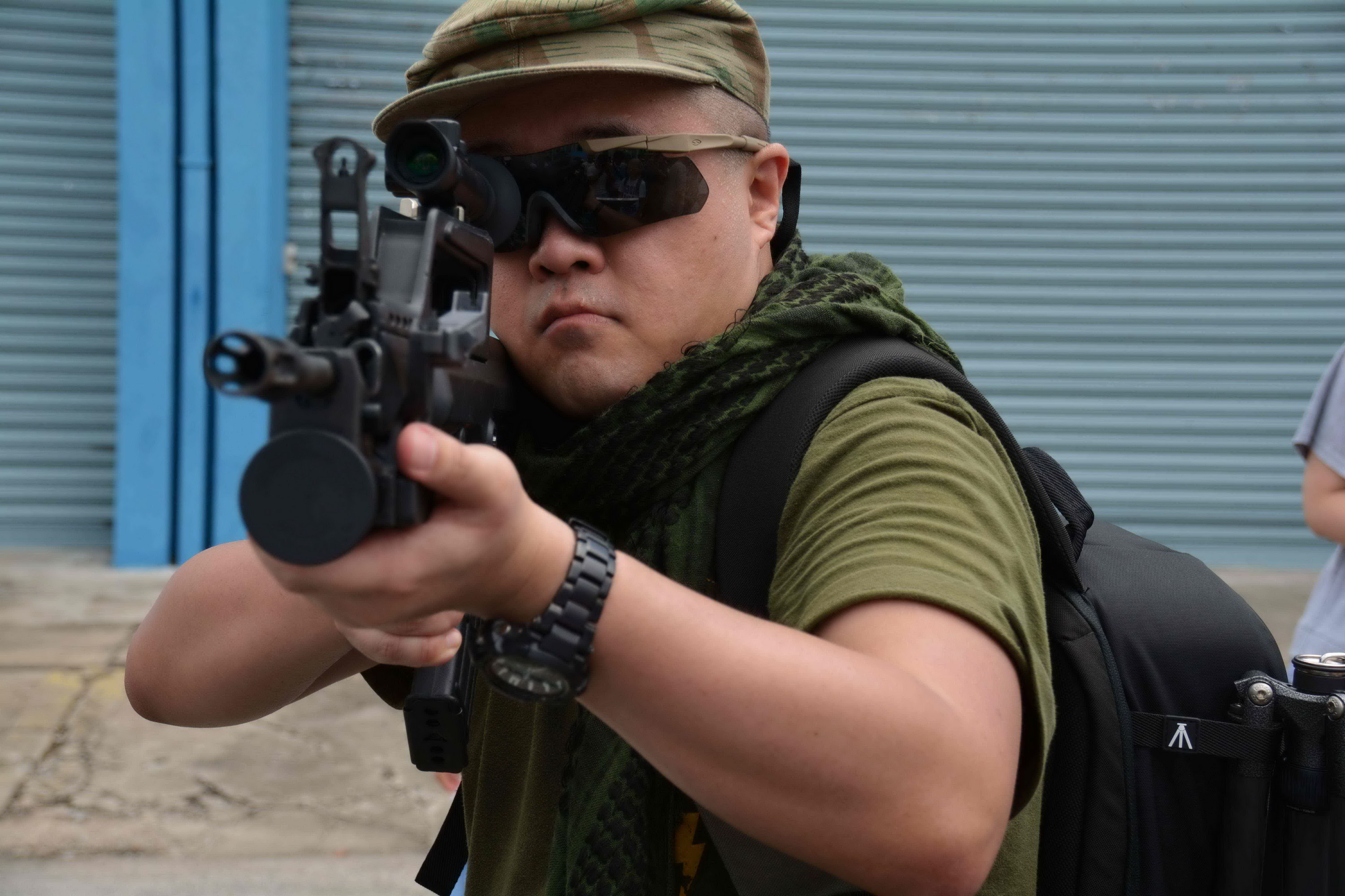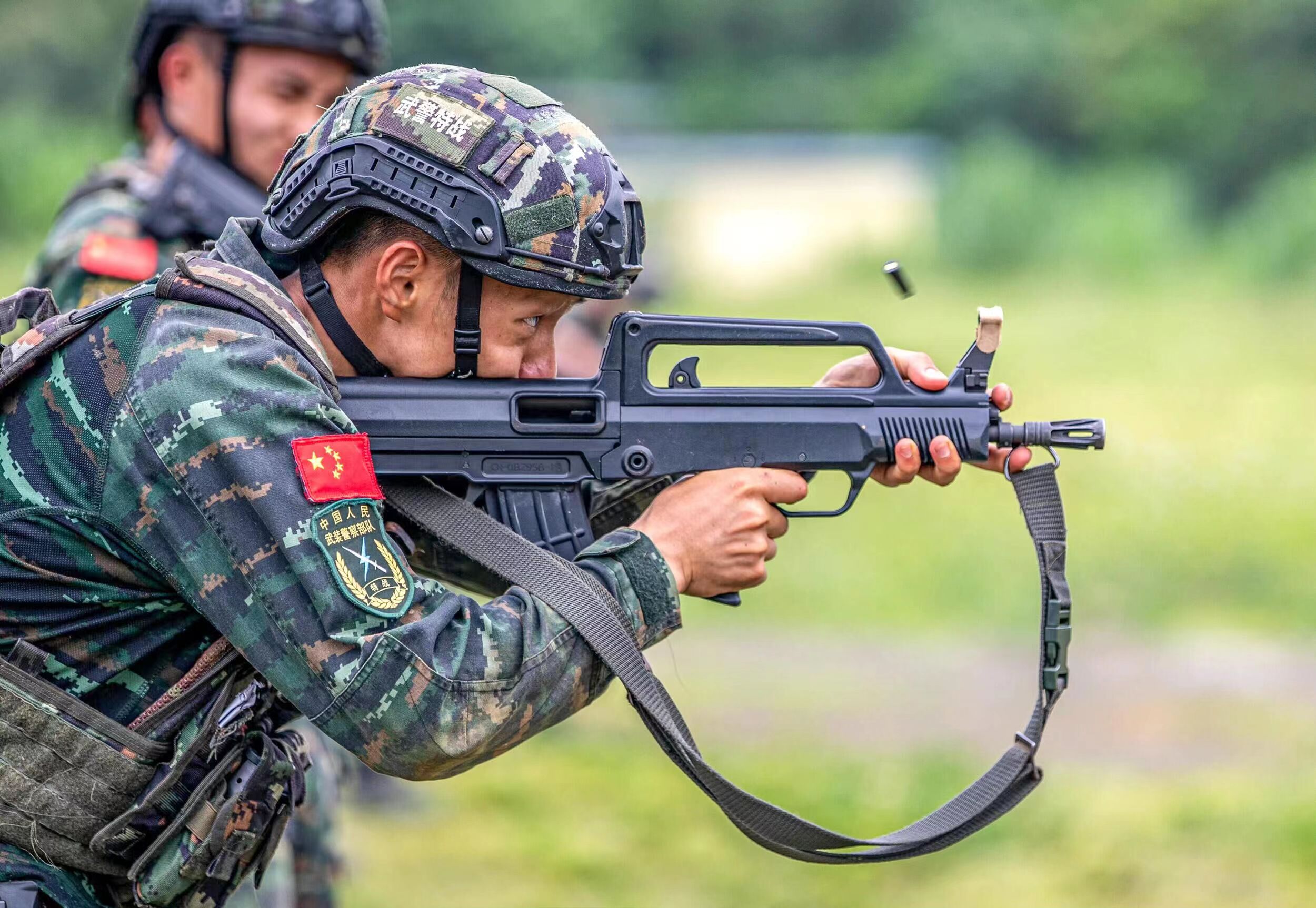 手上使用QBZ95-1,同时背着QBS09霰弹枪作为辅助武器